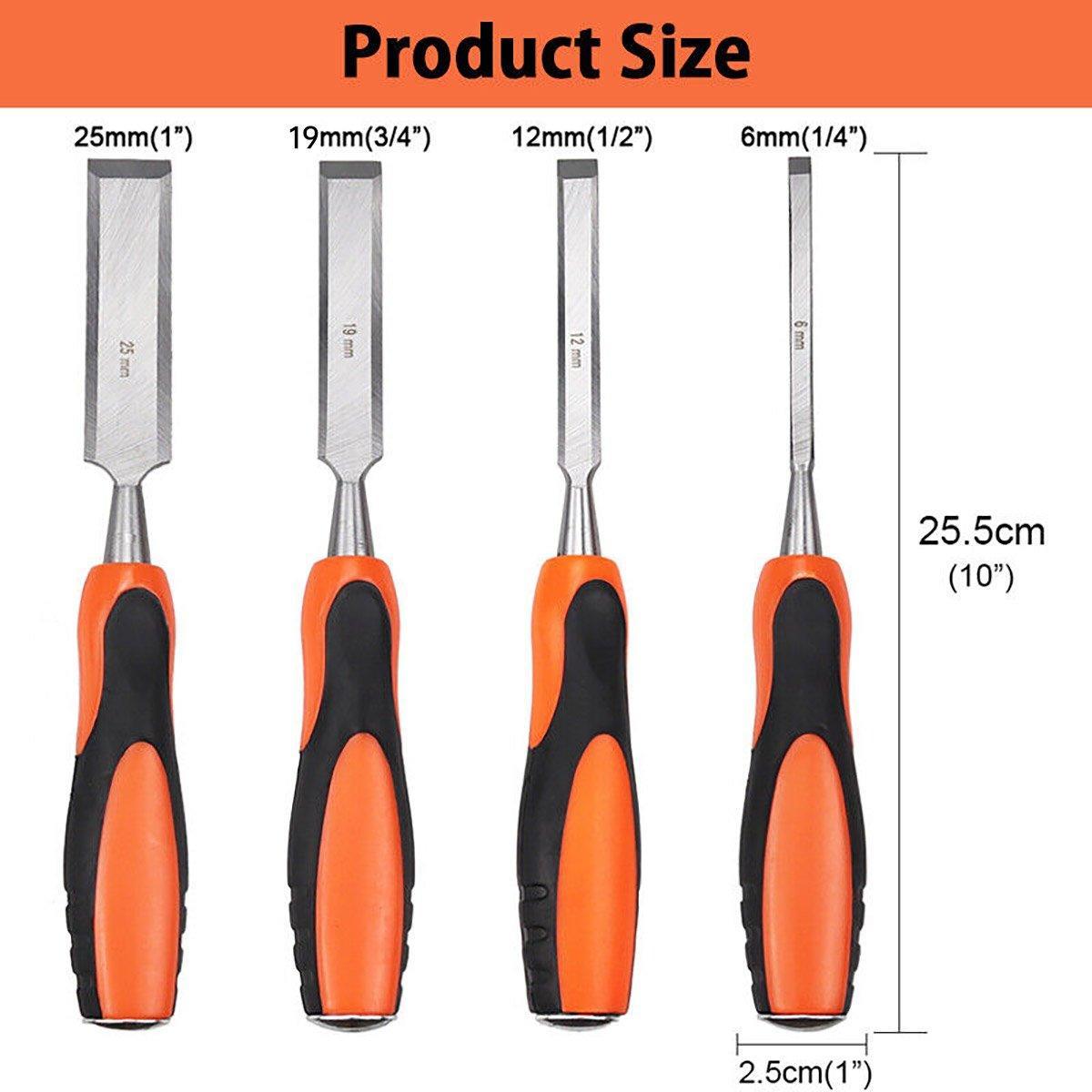 4PCS Woodworking Chisel Set Manual Carving Tools for Wood Craft DIY Projects