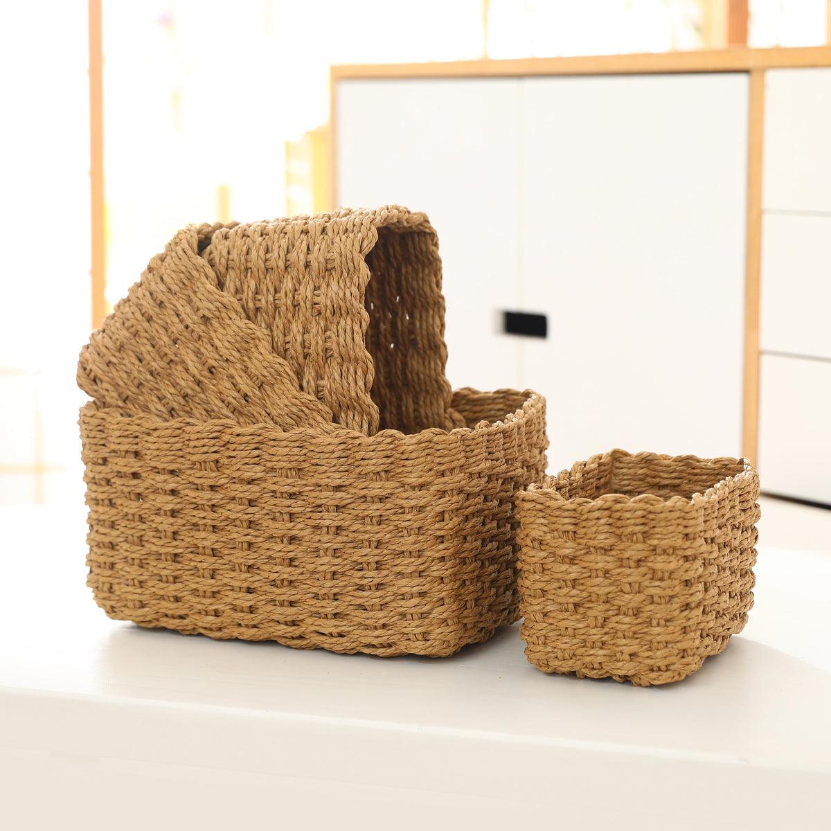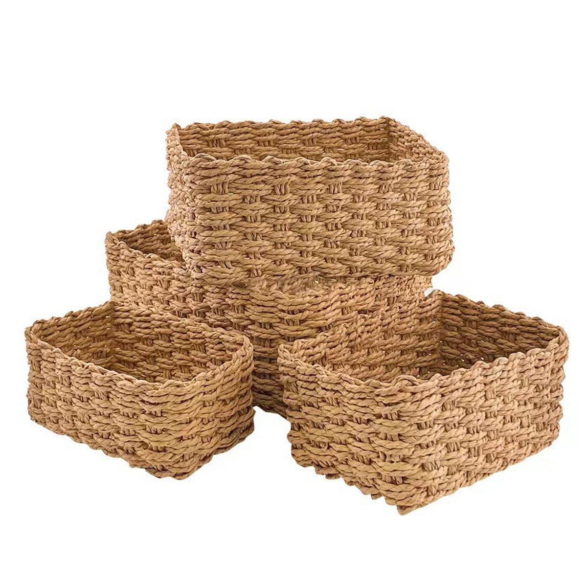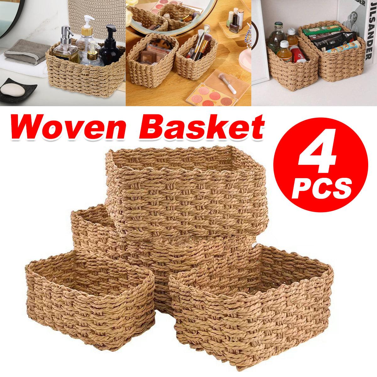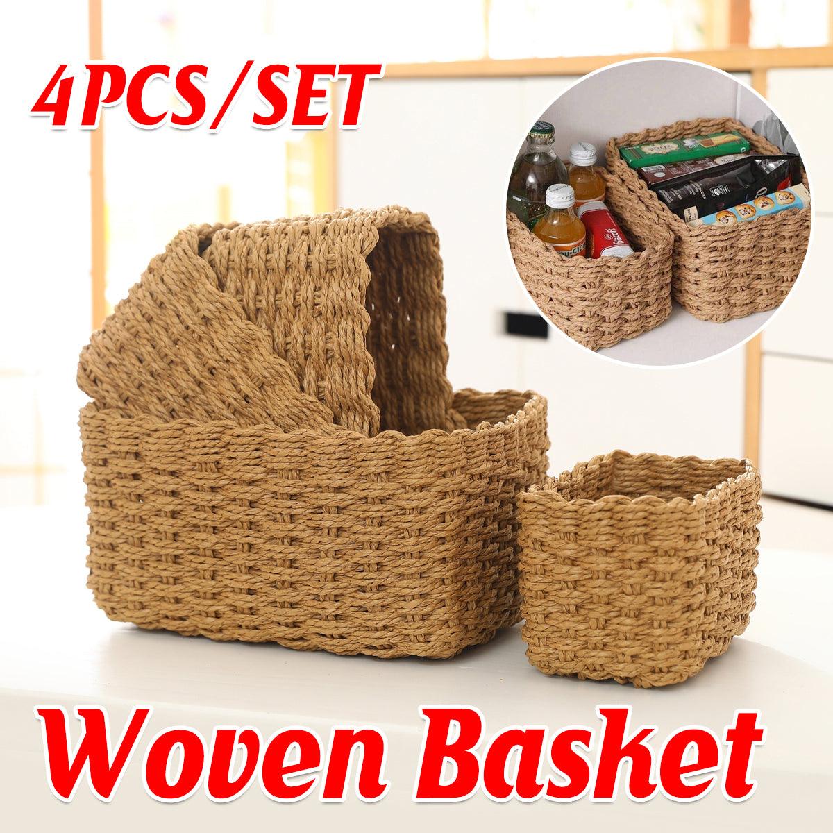 4pcs Woven Storage Basket Straw Organizer Desktop Clutter Storage Bins for Home