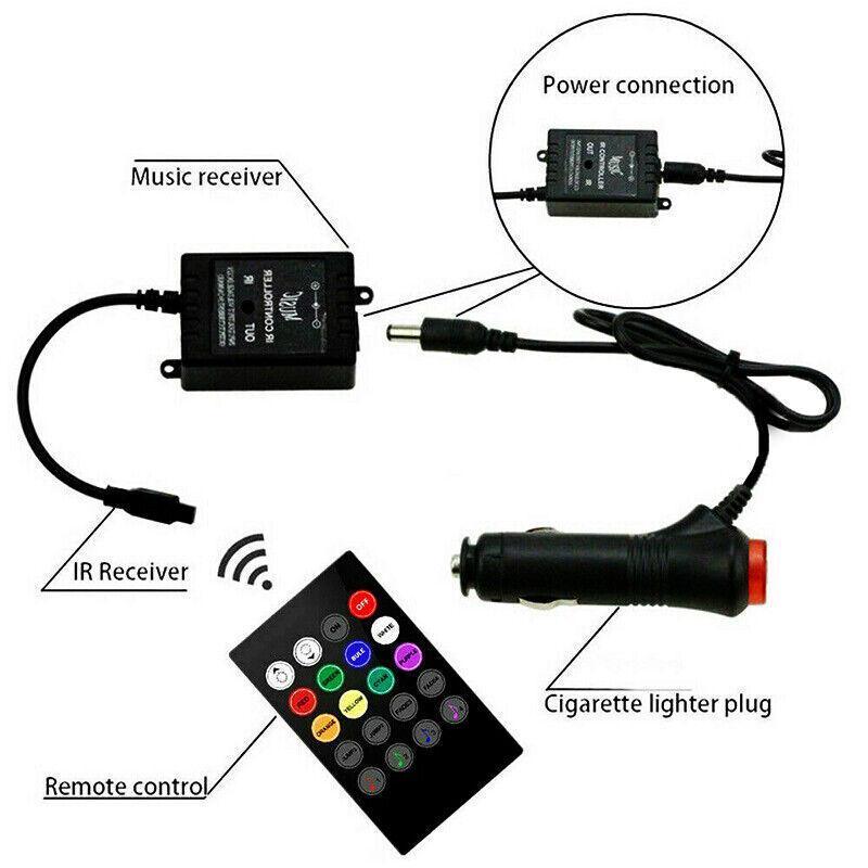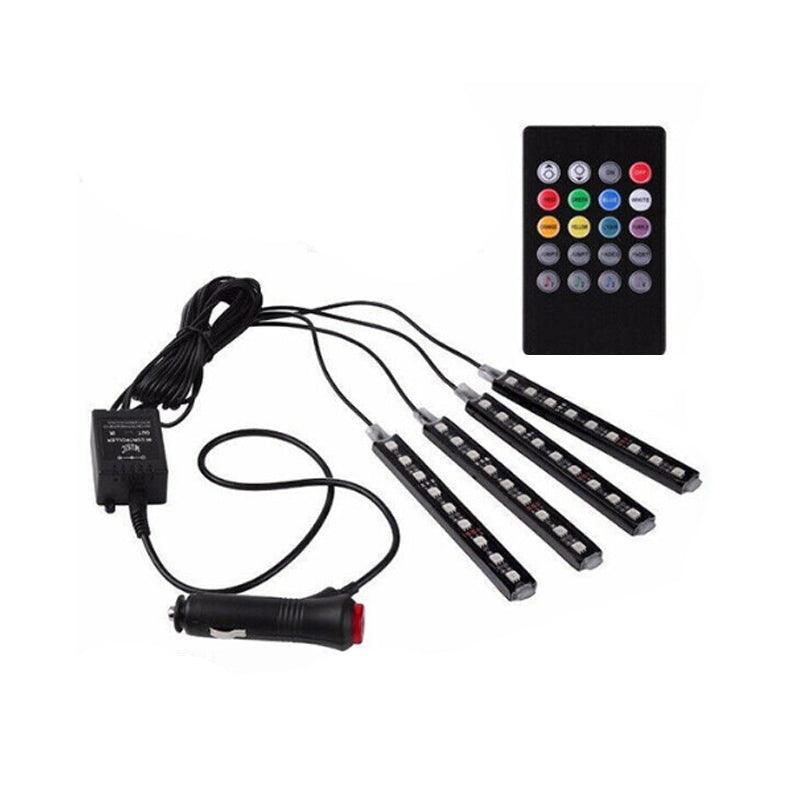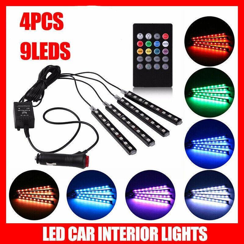 4X 12V 9Led Rgb Car Interior Led Strip Lights Wireless Remote Control Music Au