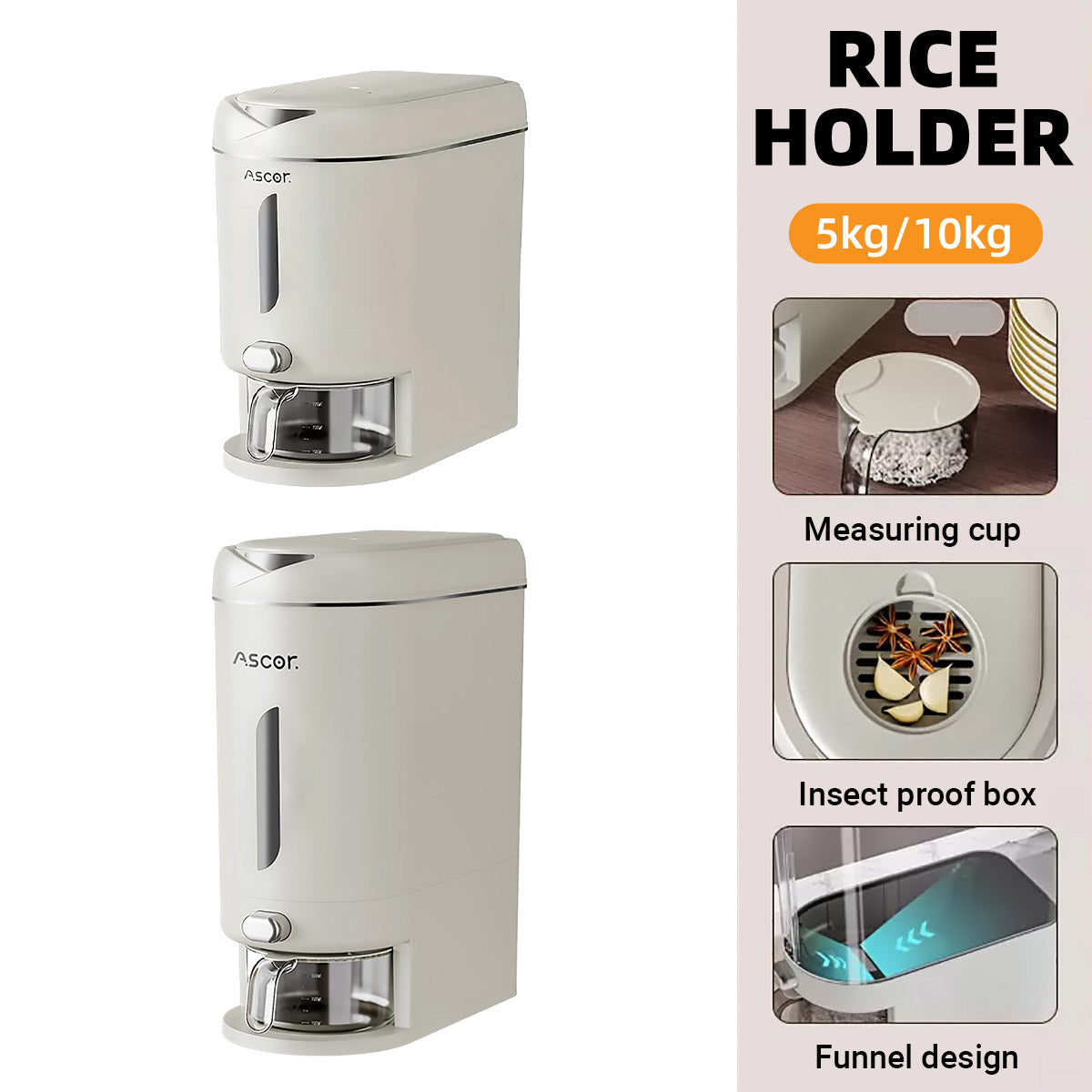 5-10KG Rice Bucket Kitchen Household Rice Bucket Storage Sealed White Flap