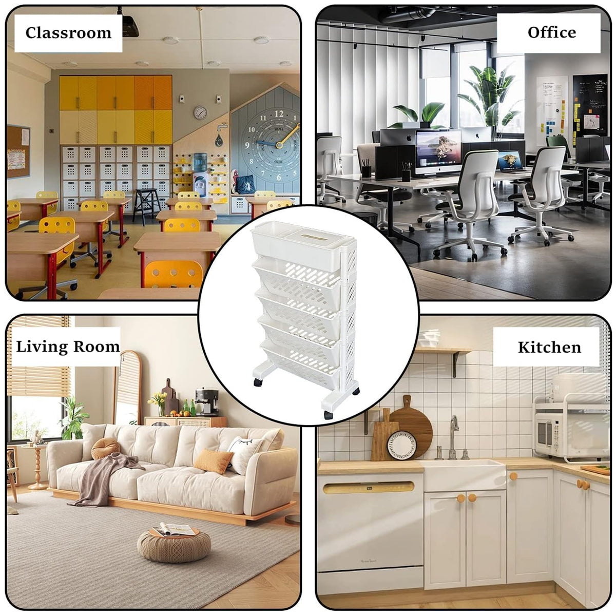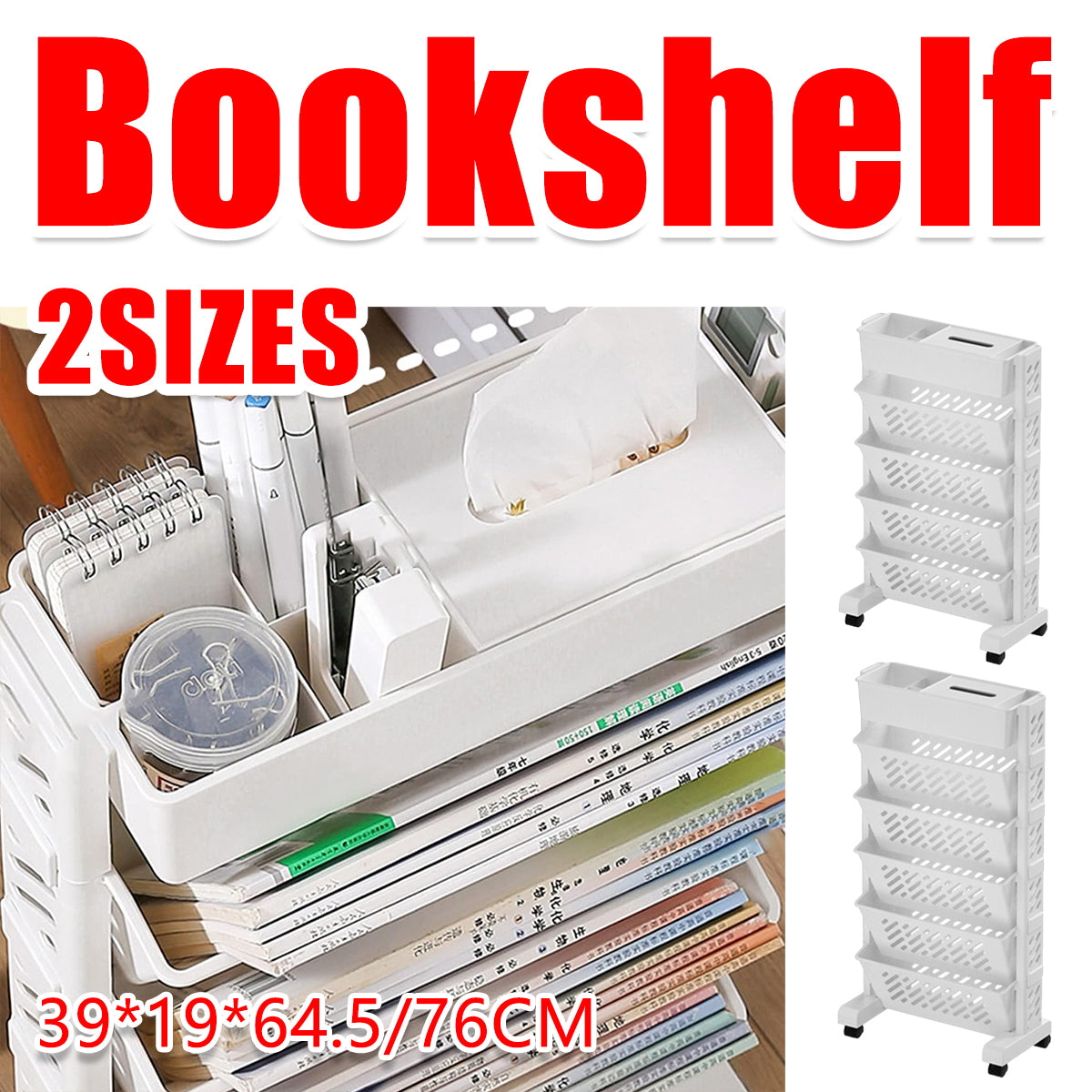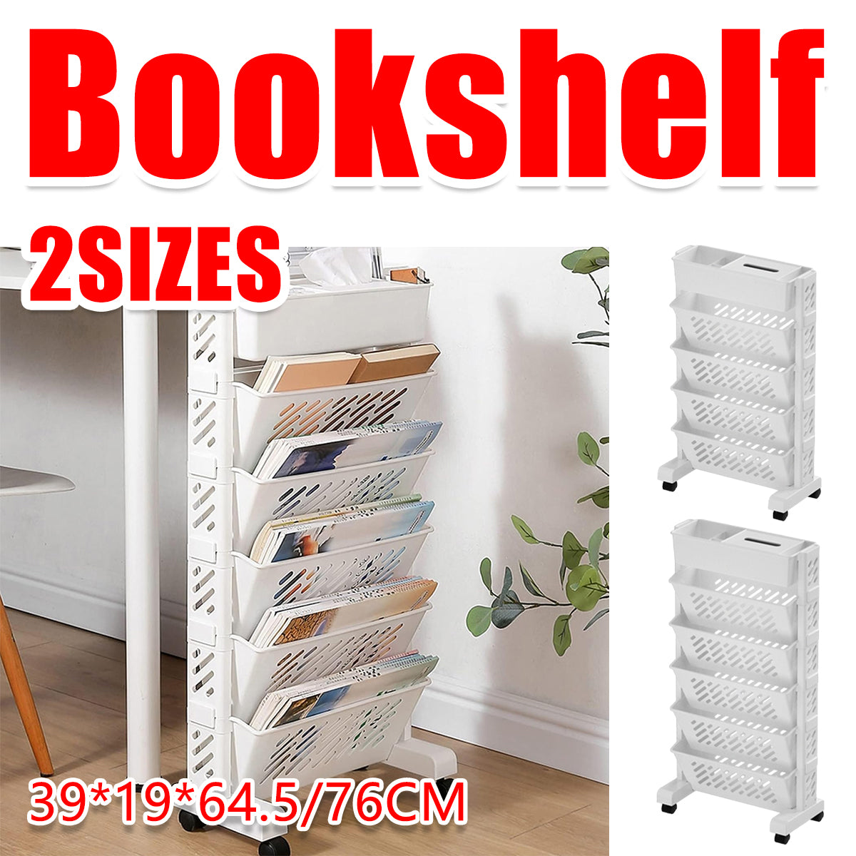 5 / 6 Tiers Rolling Bookshelf Mobile Bookcase With Wheel Sturdy Space Saving
