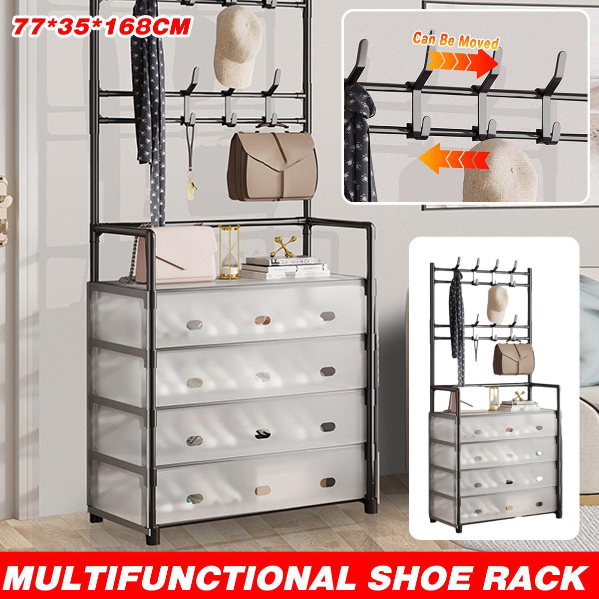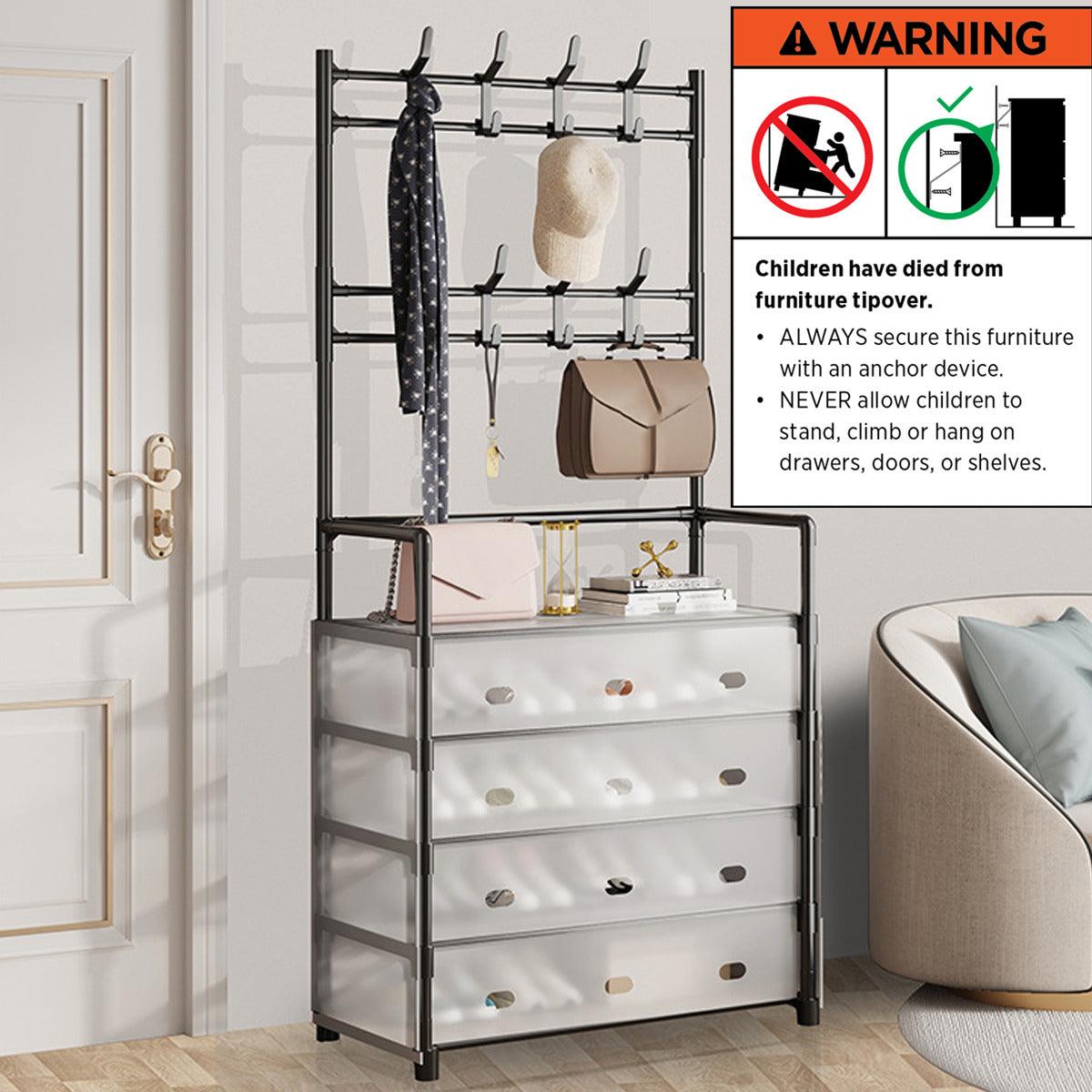 5-Layer Hall Tree with Metal Coat Rack Shoe Rack Entryway Storage Organizer Home