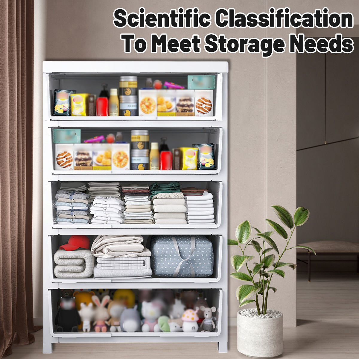 5 Tiers Large Size Plastic Drawer Storage Cabinet Dustproof Space Saving for Home