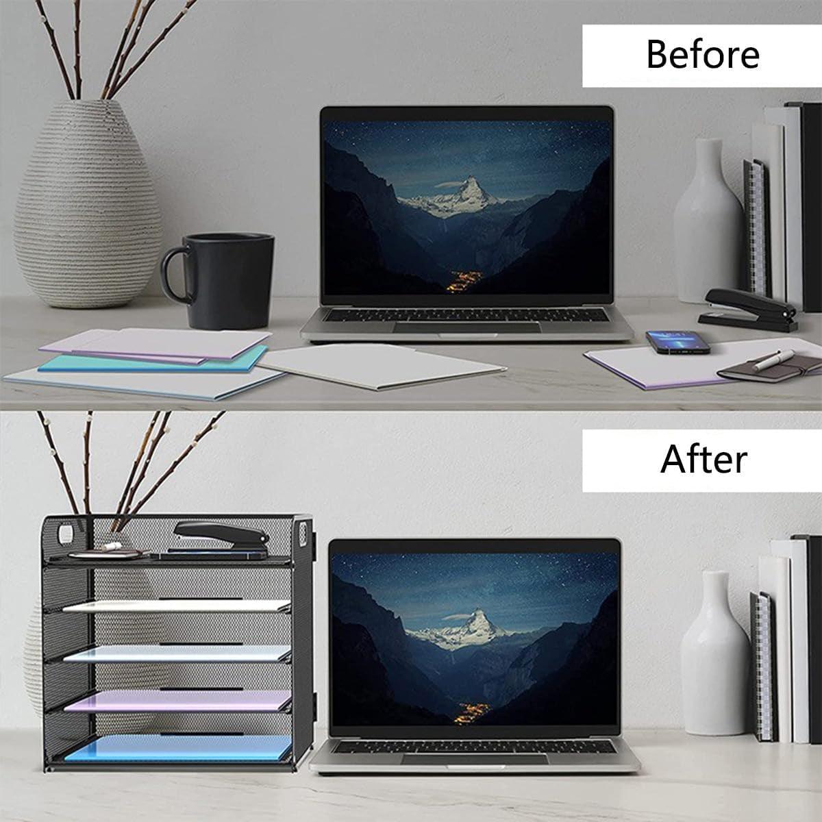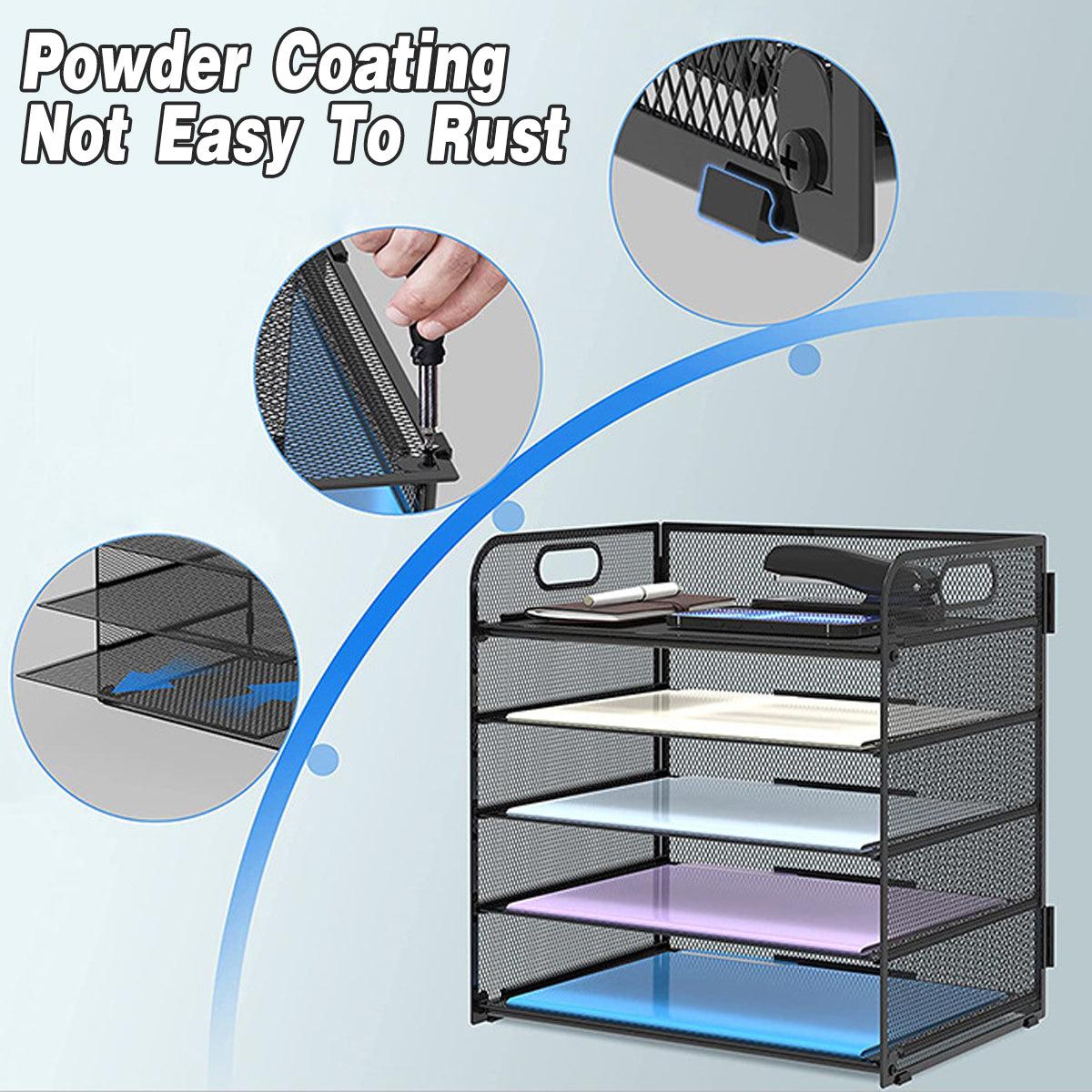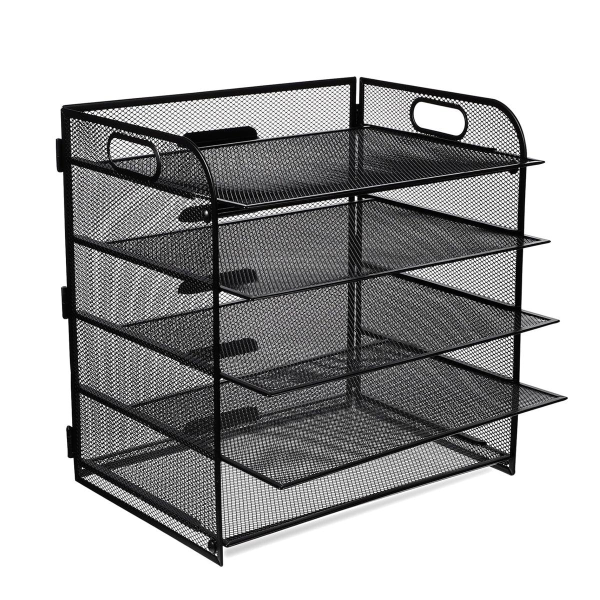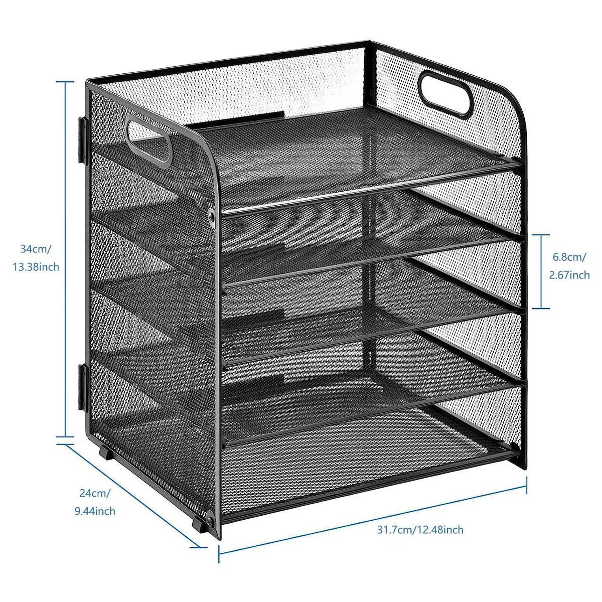 5 Tray Paper Organizer with Handle Mesh Desk File Letter Holder Black Storage