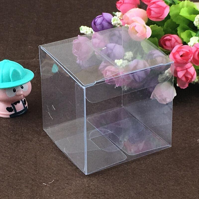 50 PVC Clear Transparent Macaron Square Cube Boxes For Wedding Favour Gift Candy