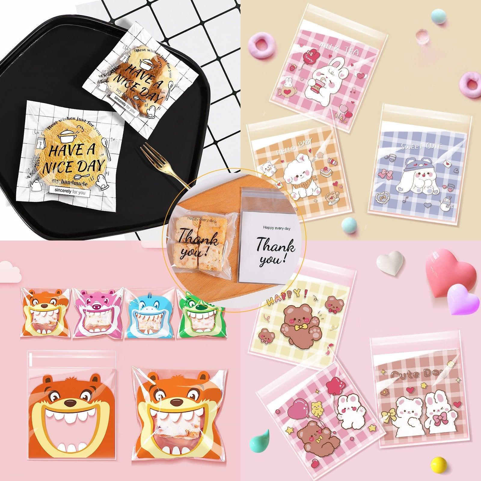 500 Pack Self Adhesive Cookie Packaging Bags Vibrant Designs OPP Material