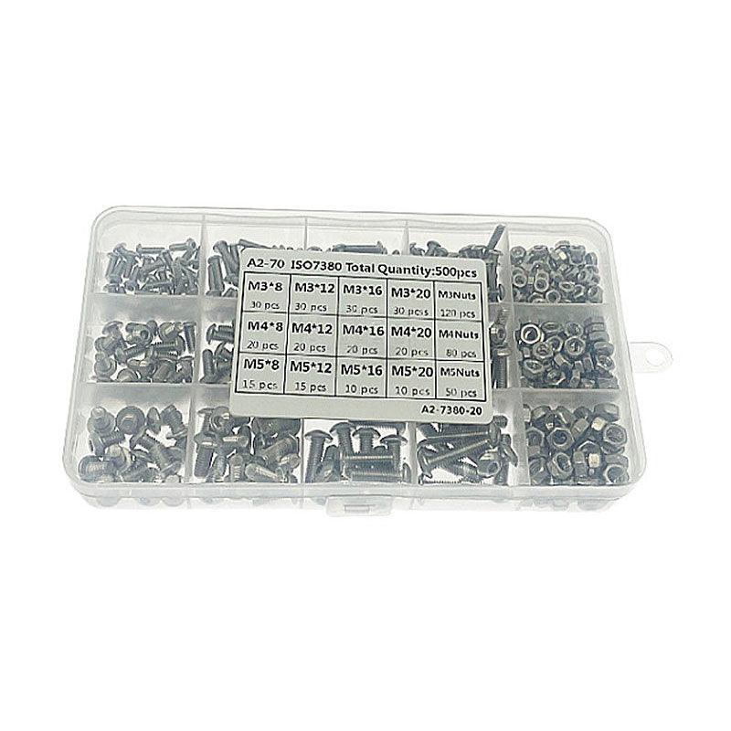 500x M3/M4/M5 Stainless Steel Hex Socket Button Head Bolts Screws Nuts Kit