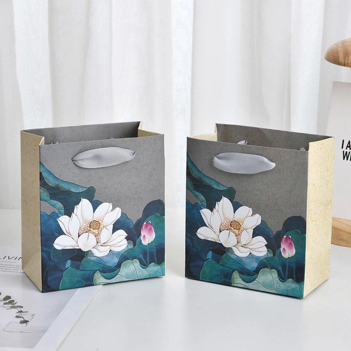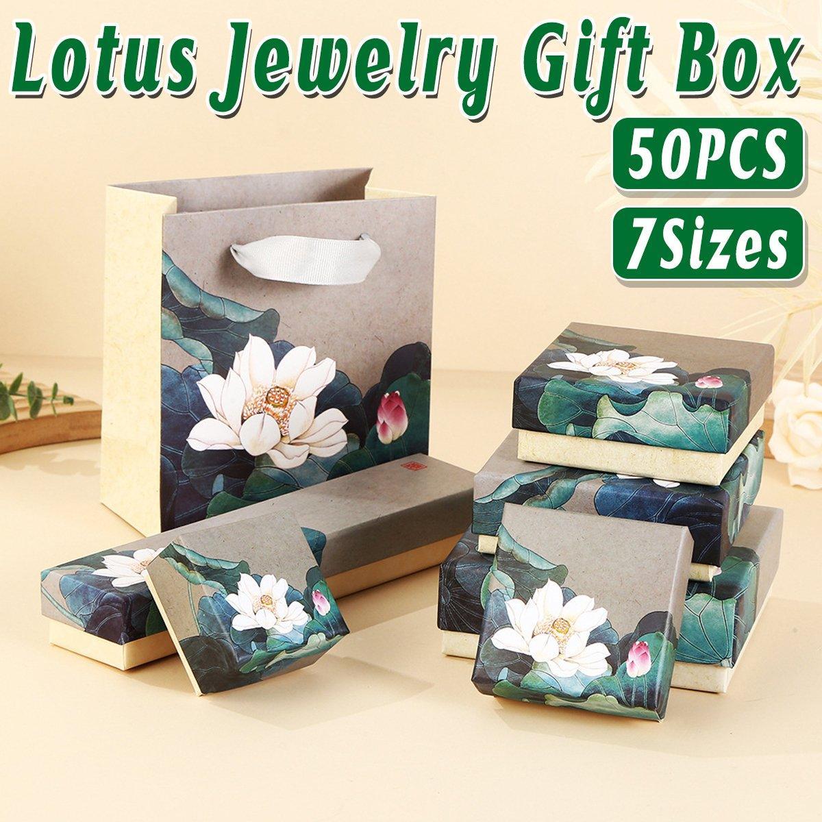 50pcs Blue Vintage Lotus Jewelry Box Paper Packaging Gift Boxes for Jewelry