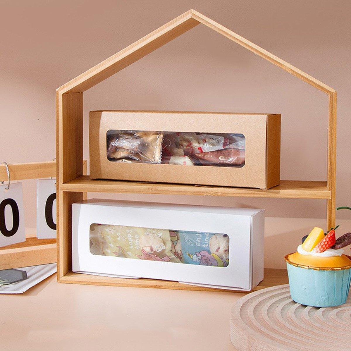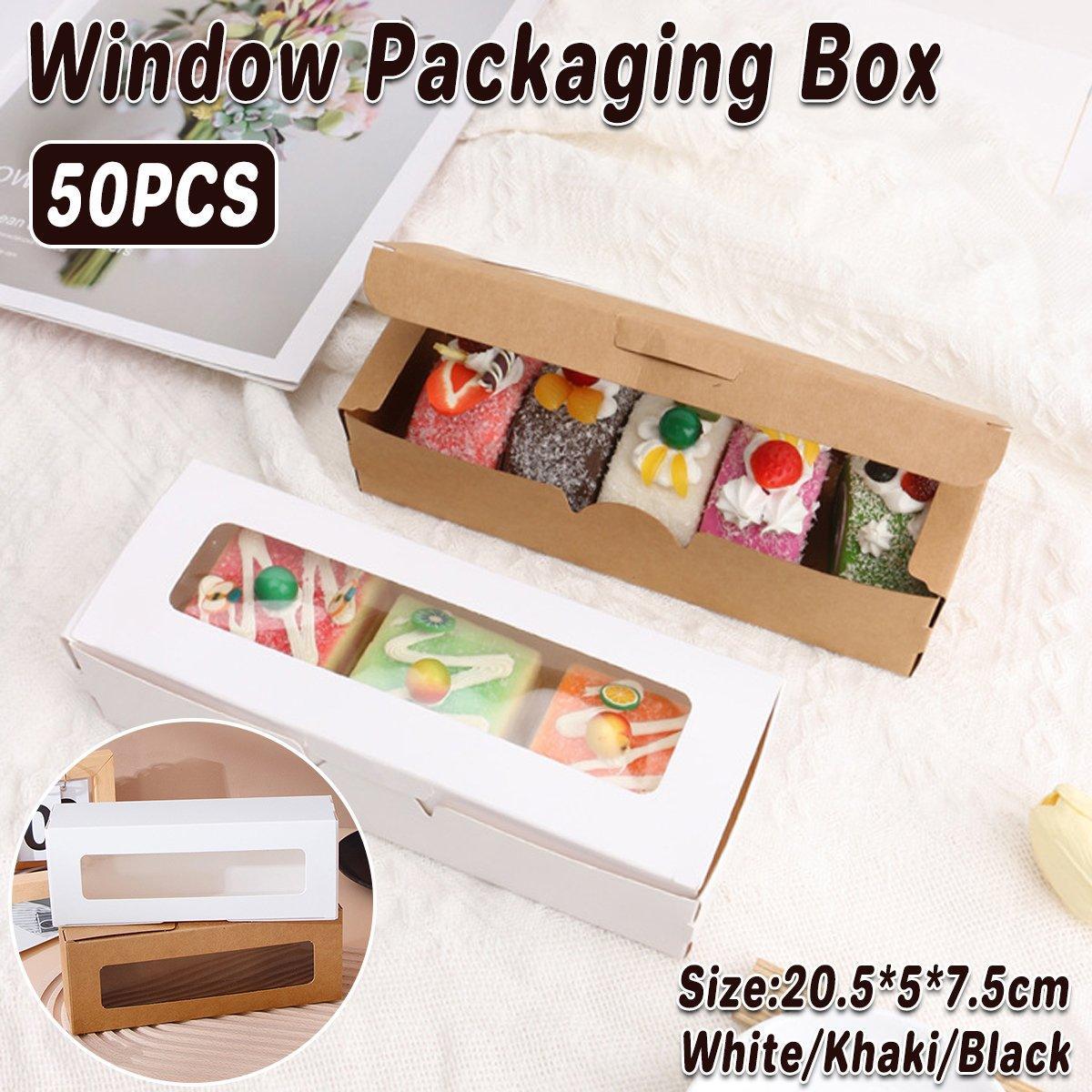 50PCS Kraft Paper Macaron Box Transparent Window Cookie Candy Packaging