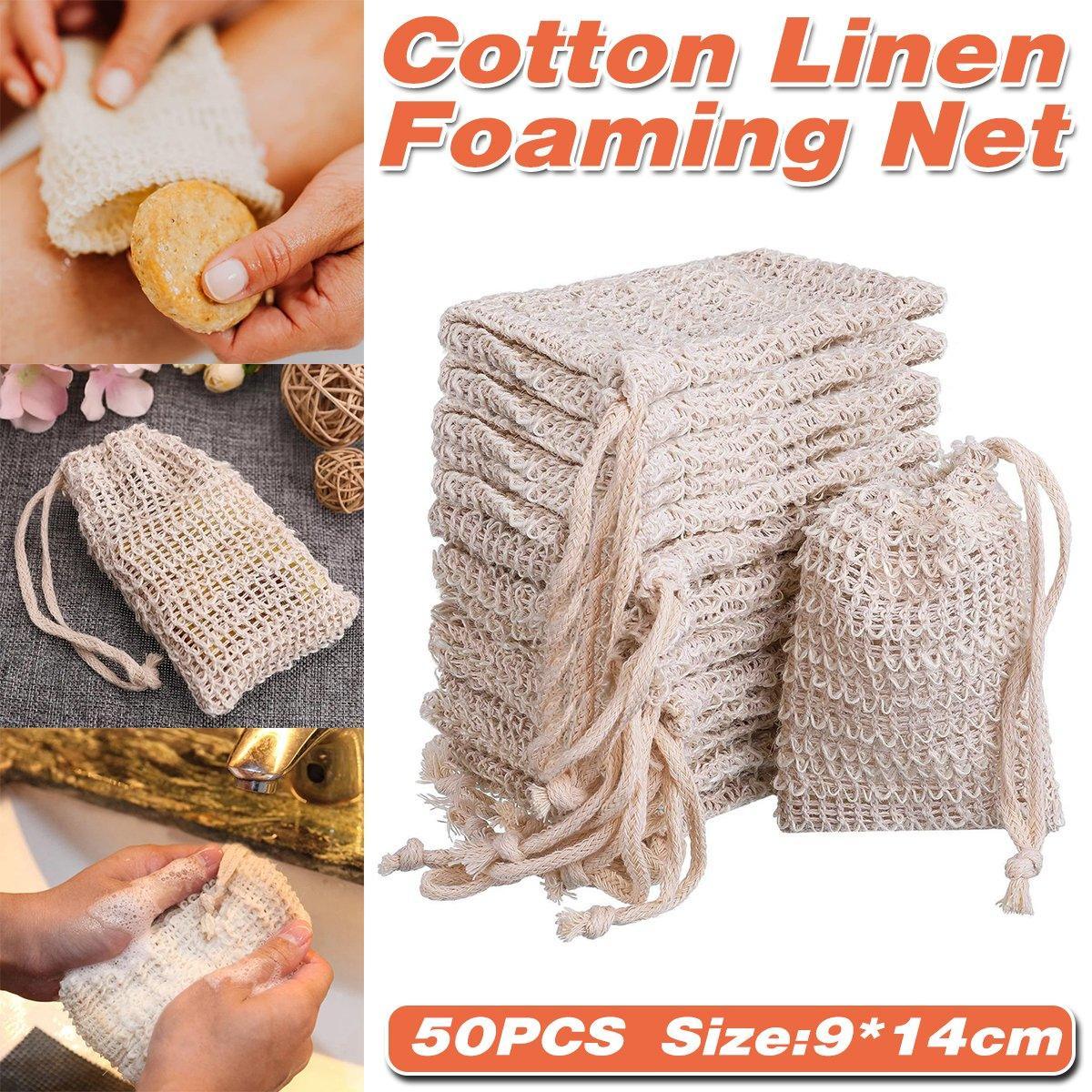 50PCS Soap Exfoliating Bags Cotton Linen Foaming Soap Saver Bag Pouch Drawstring