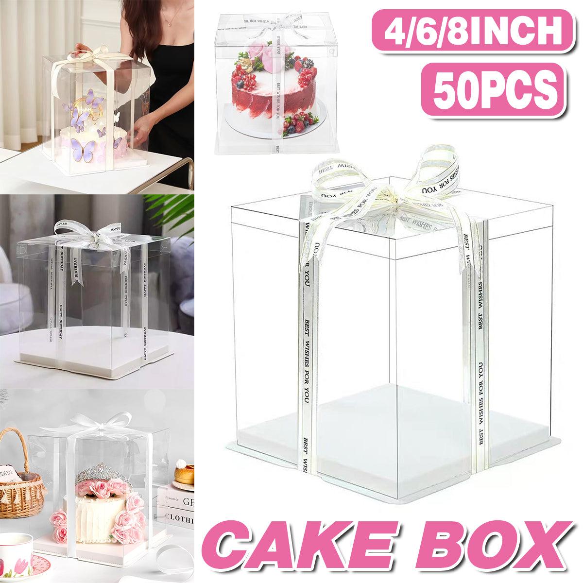 50pcs Transparent Cake Packaging Box Bakery Cake Boxes Plastic Packing Boxes
