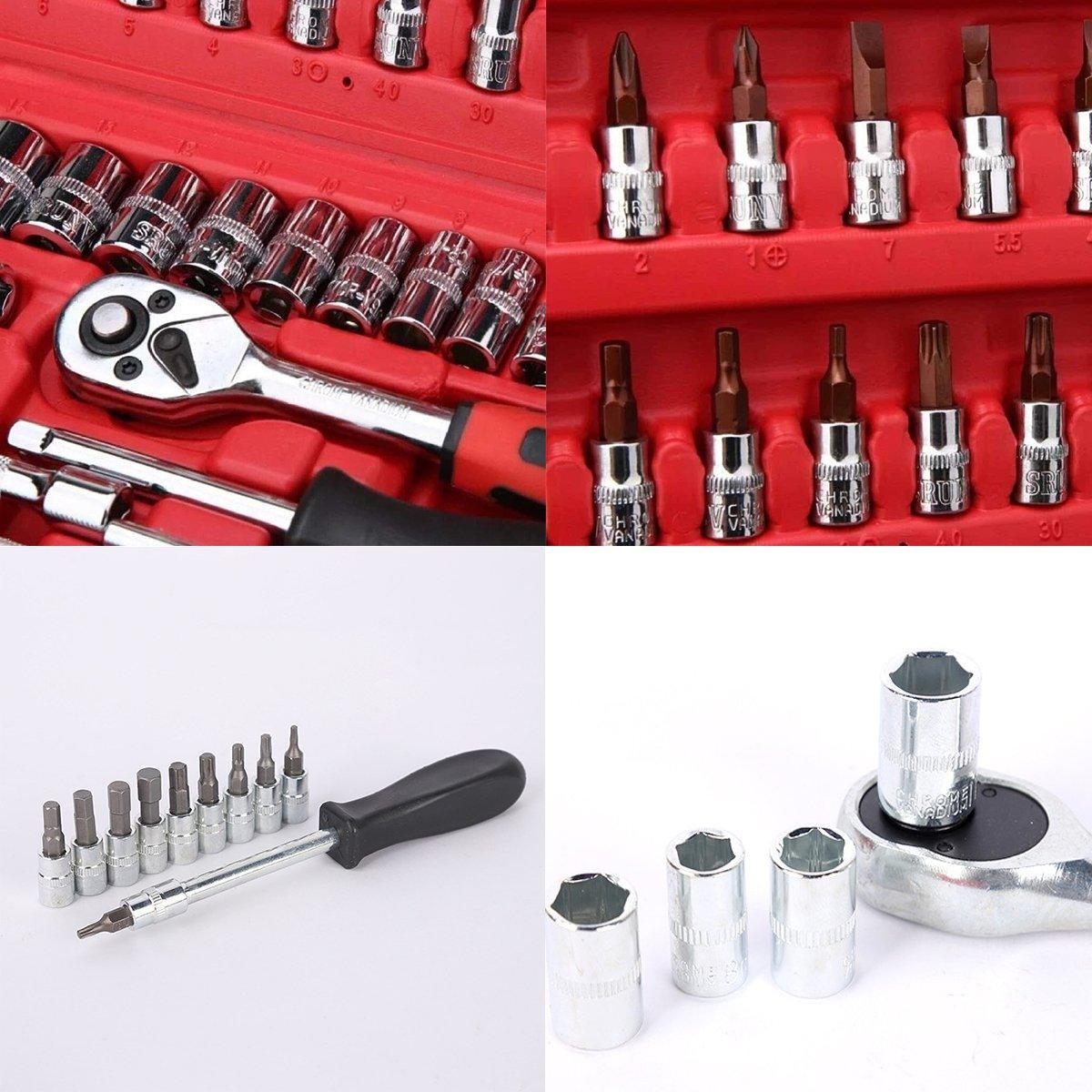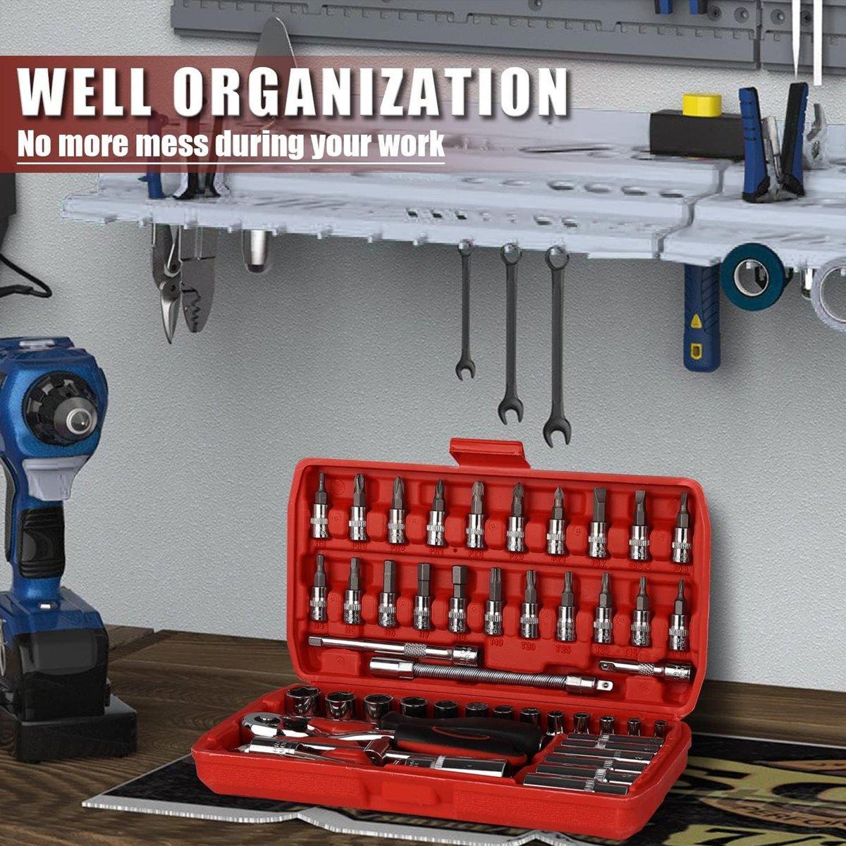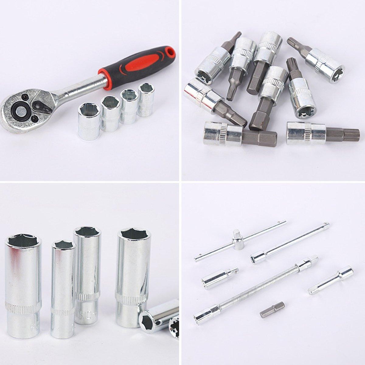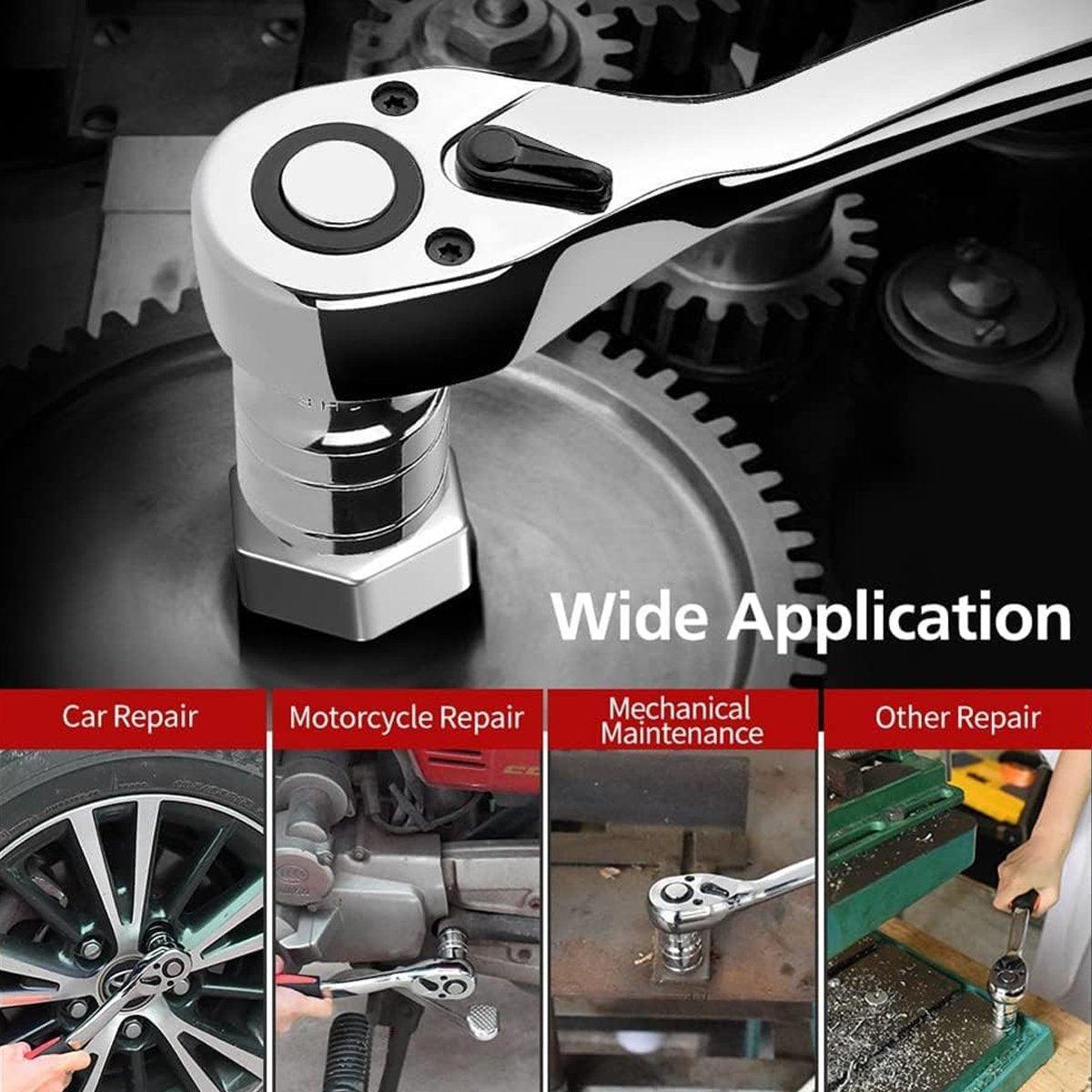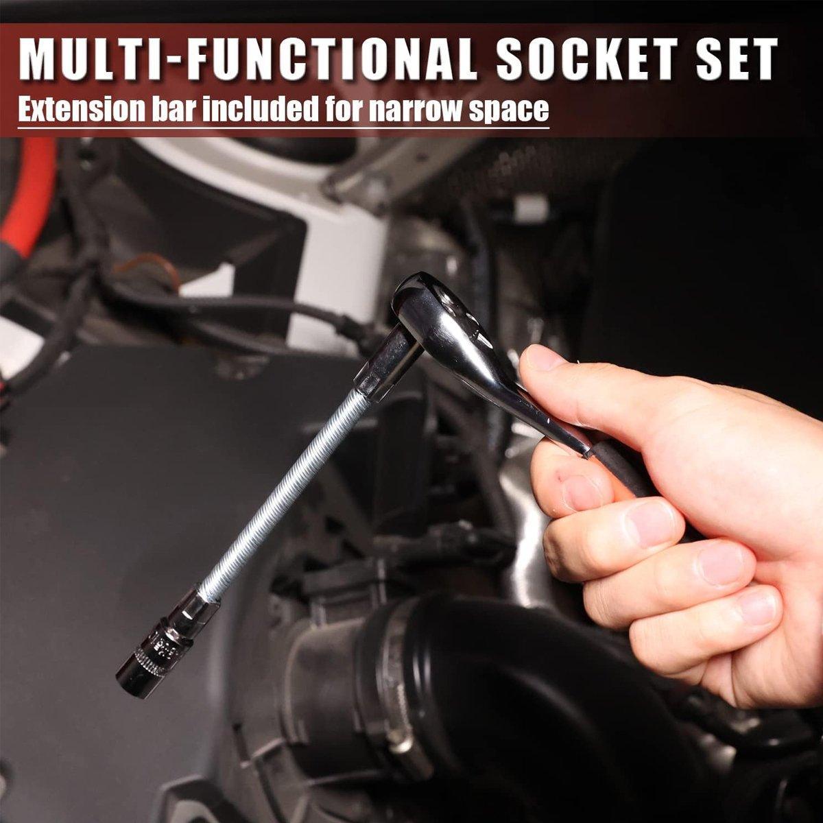 53PCS Metric Deep Socket Set 1/4" Drive Wrench with Flexible Extension Bar Tools