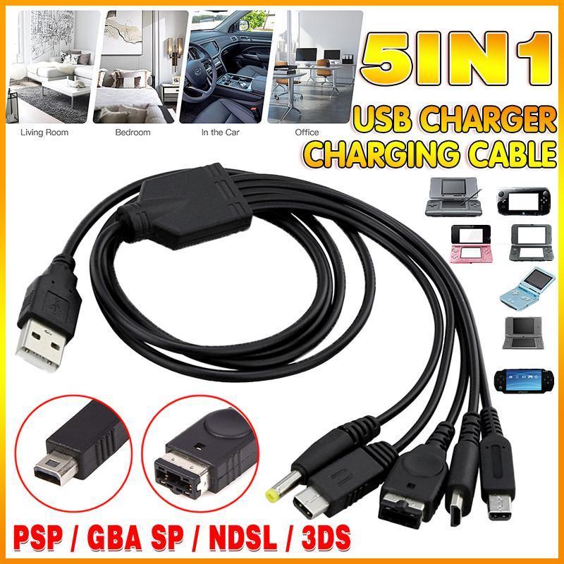 5-in-1 USB Charger Cable for Nintendo DS/DS Lite/3DS/GBA SP/PSP Console