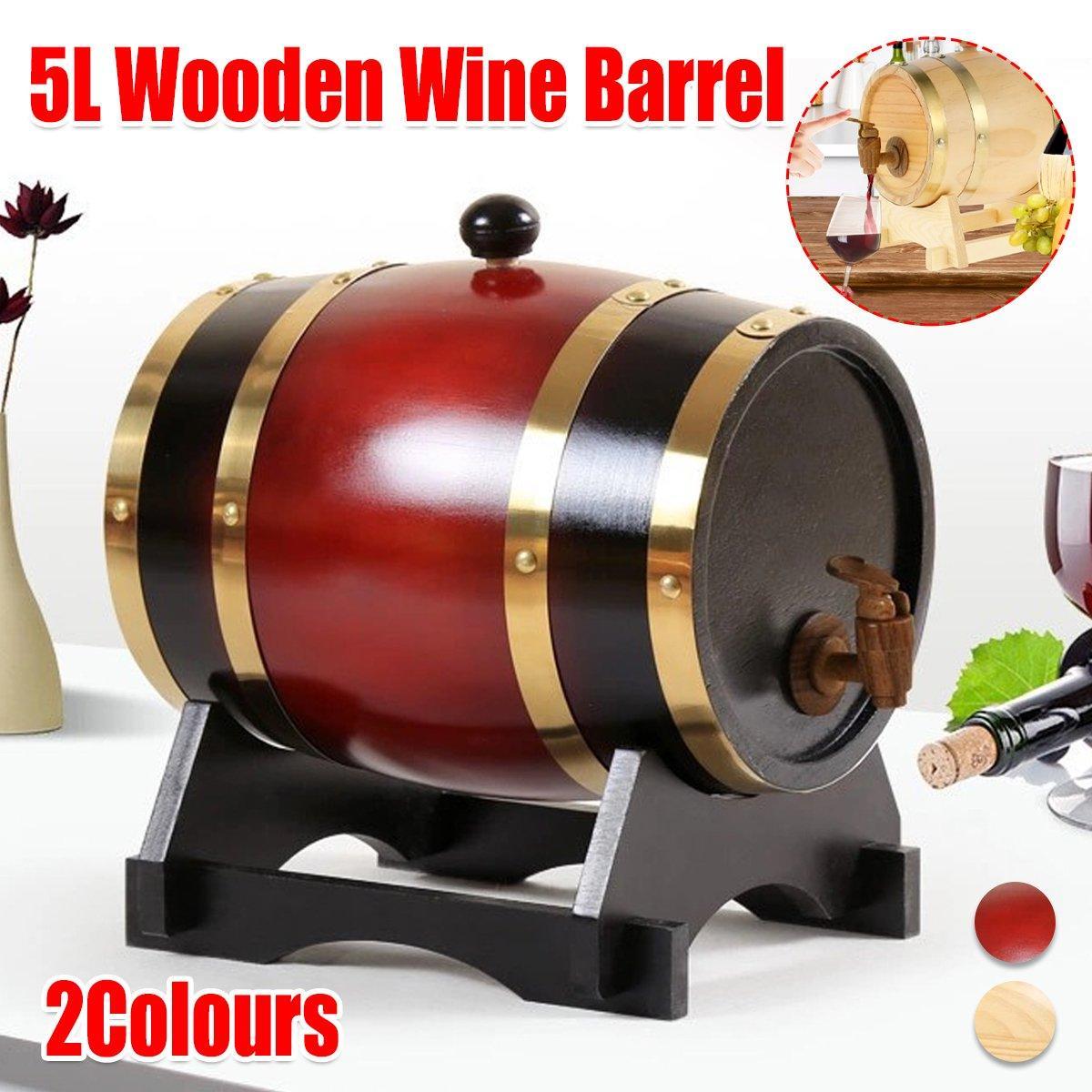 5L Wooden Wine Barrel Whiskey Rum Beer Spirits Storage Brewing Cask Vintage