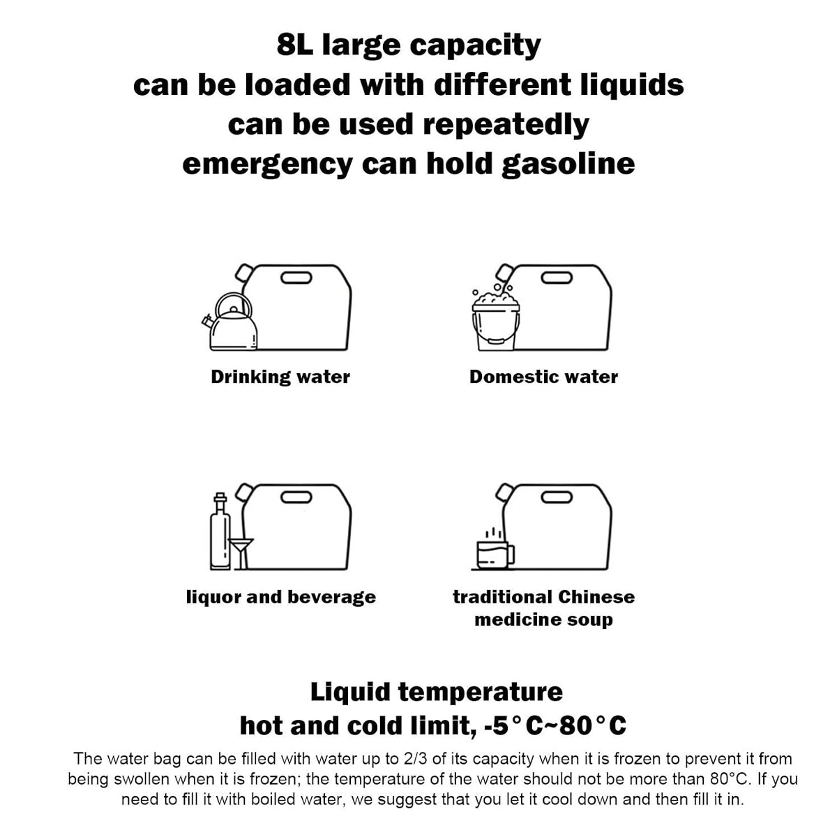 5pcs 8L Portable Water Bladder Tank Water Storage Bag For Camping Fishing Hiking