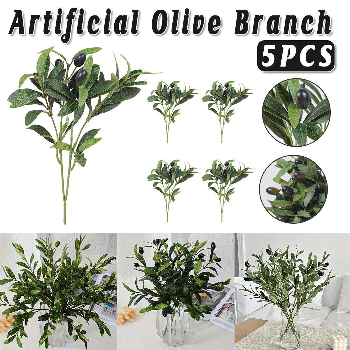 5PCS Artificial Olive Branch Greenery Fake Olive Leave with Fruit for Home Decor