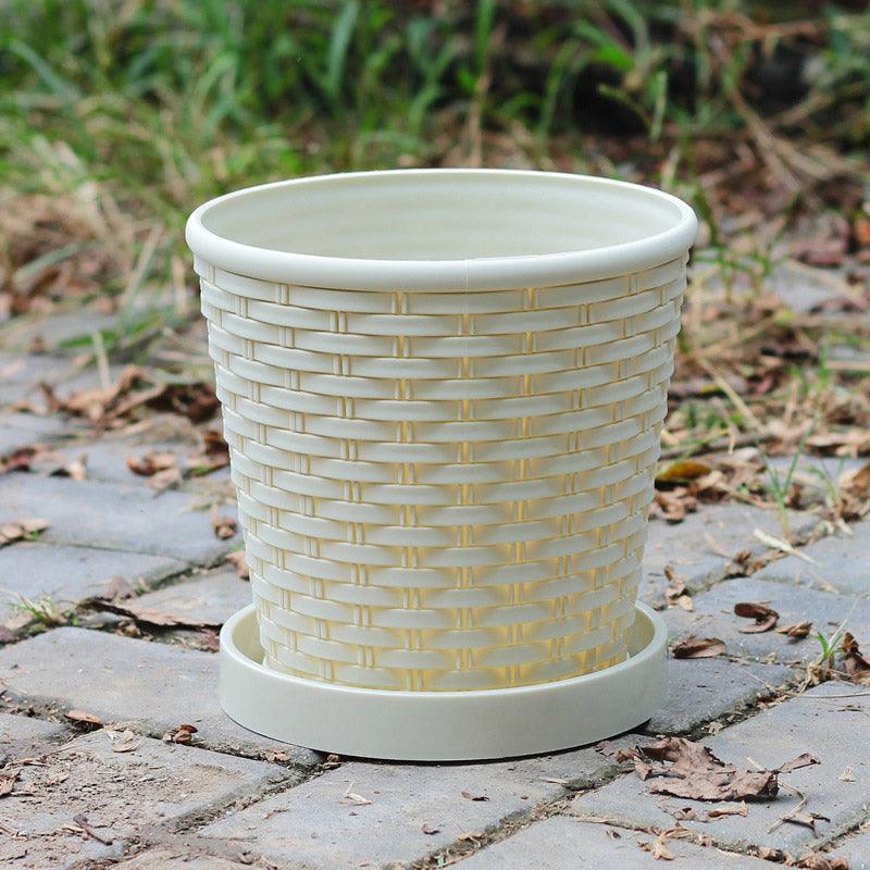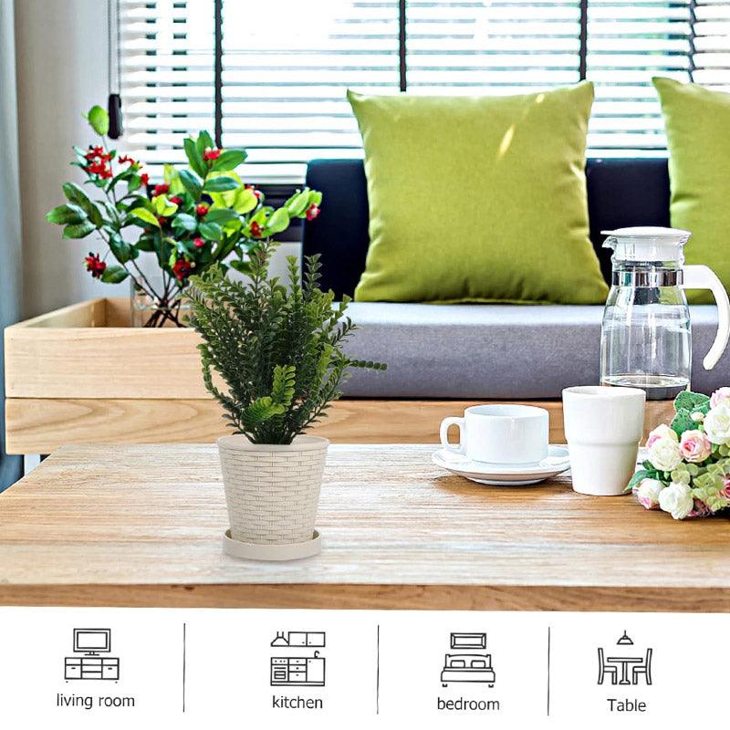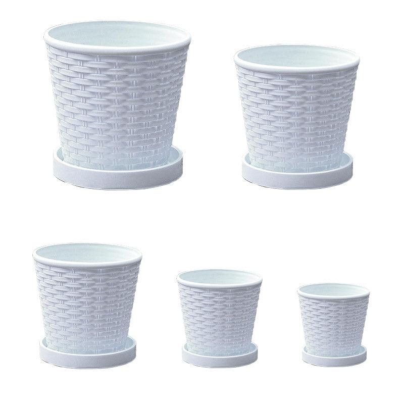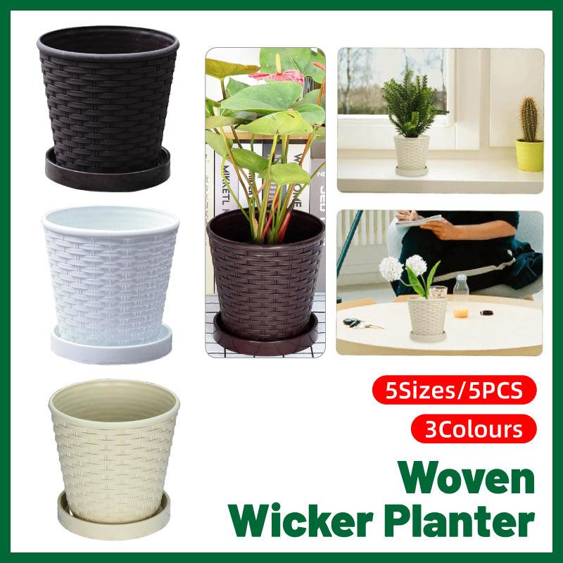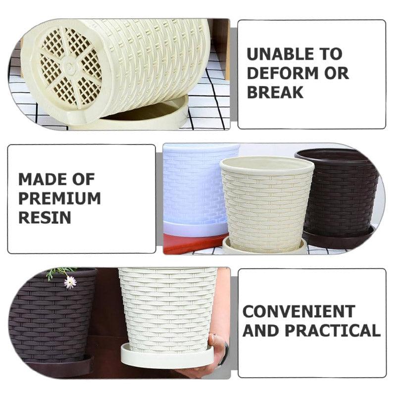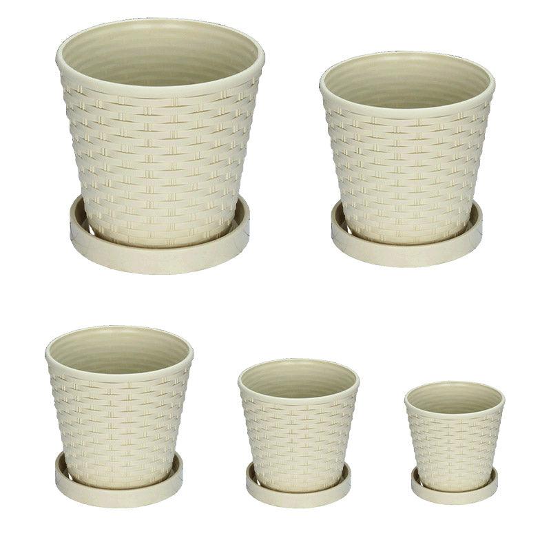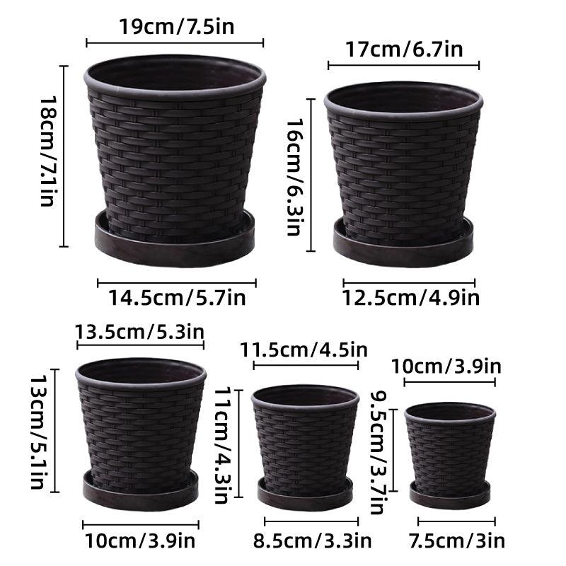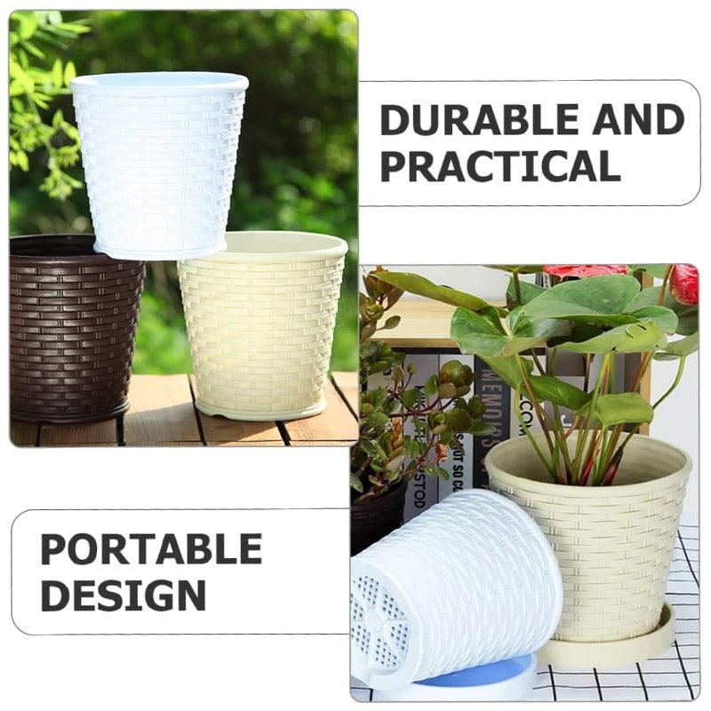 5pcs Bamboo Flower Pot Indoor Round Planter with Drainage Tray Garden Decor