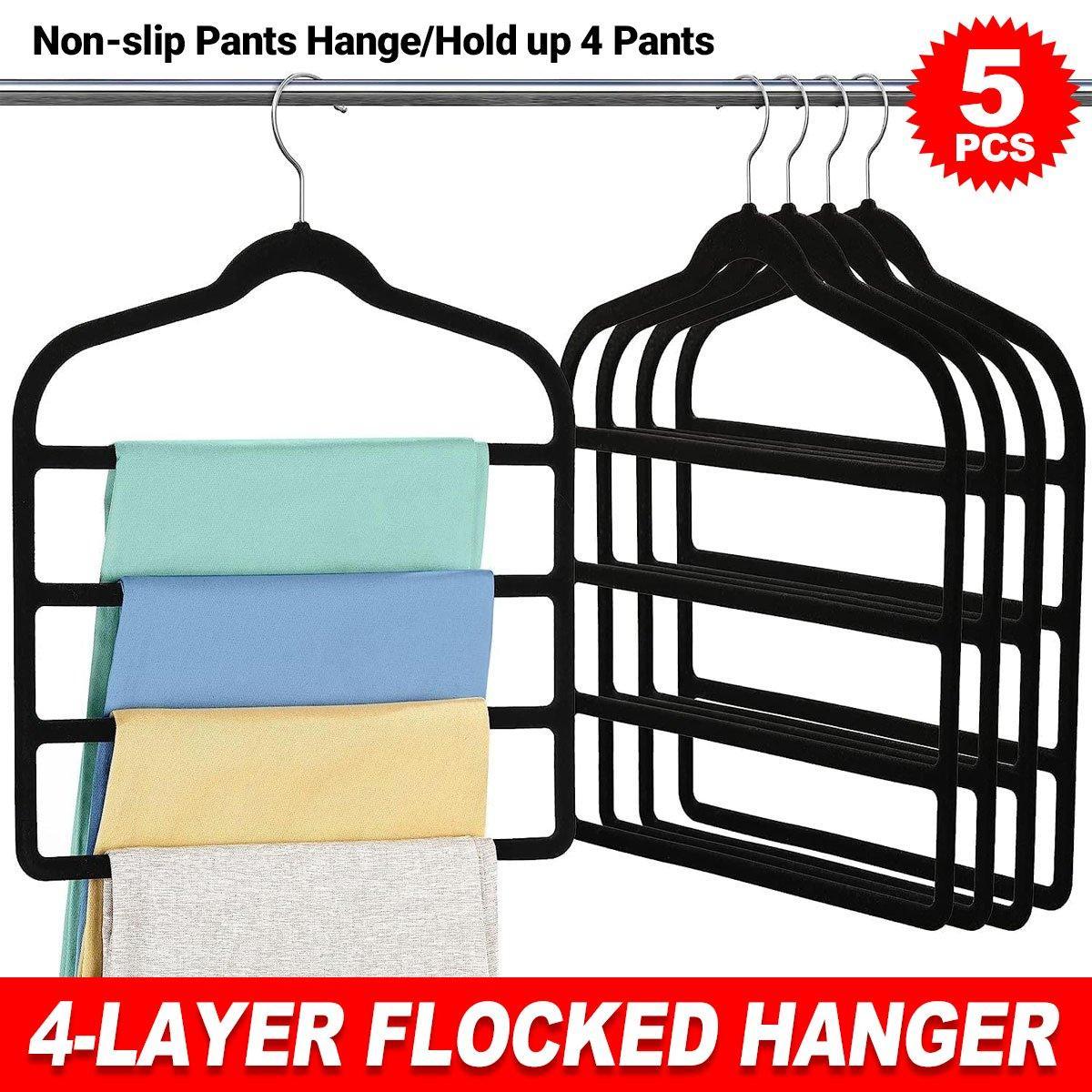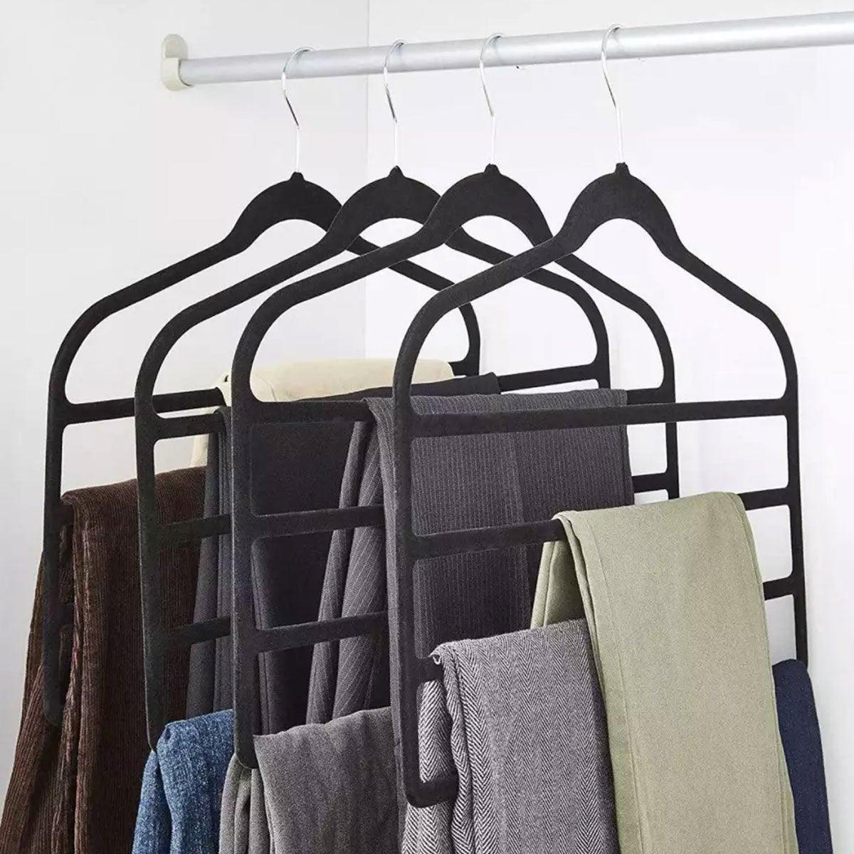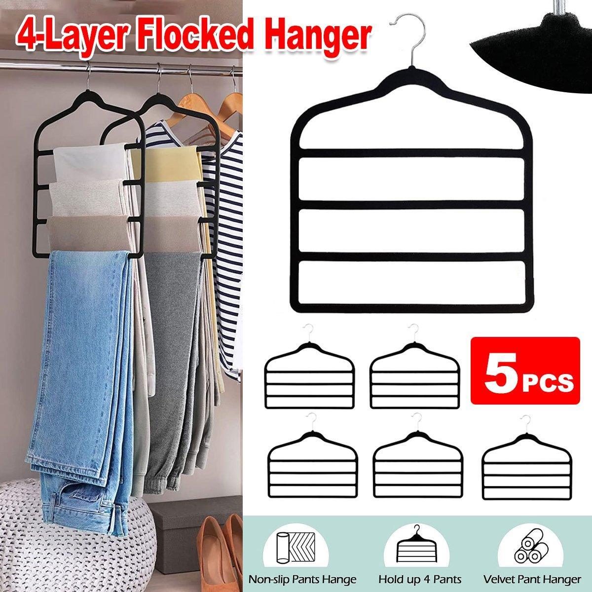 5PCS Multifunctional Non-slip Flocking Rack Multi-layer Hanger Wardrobe Storage