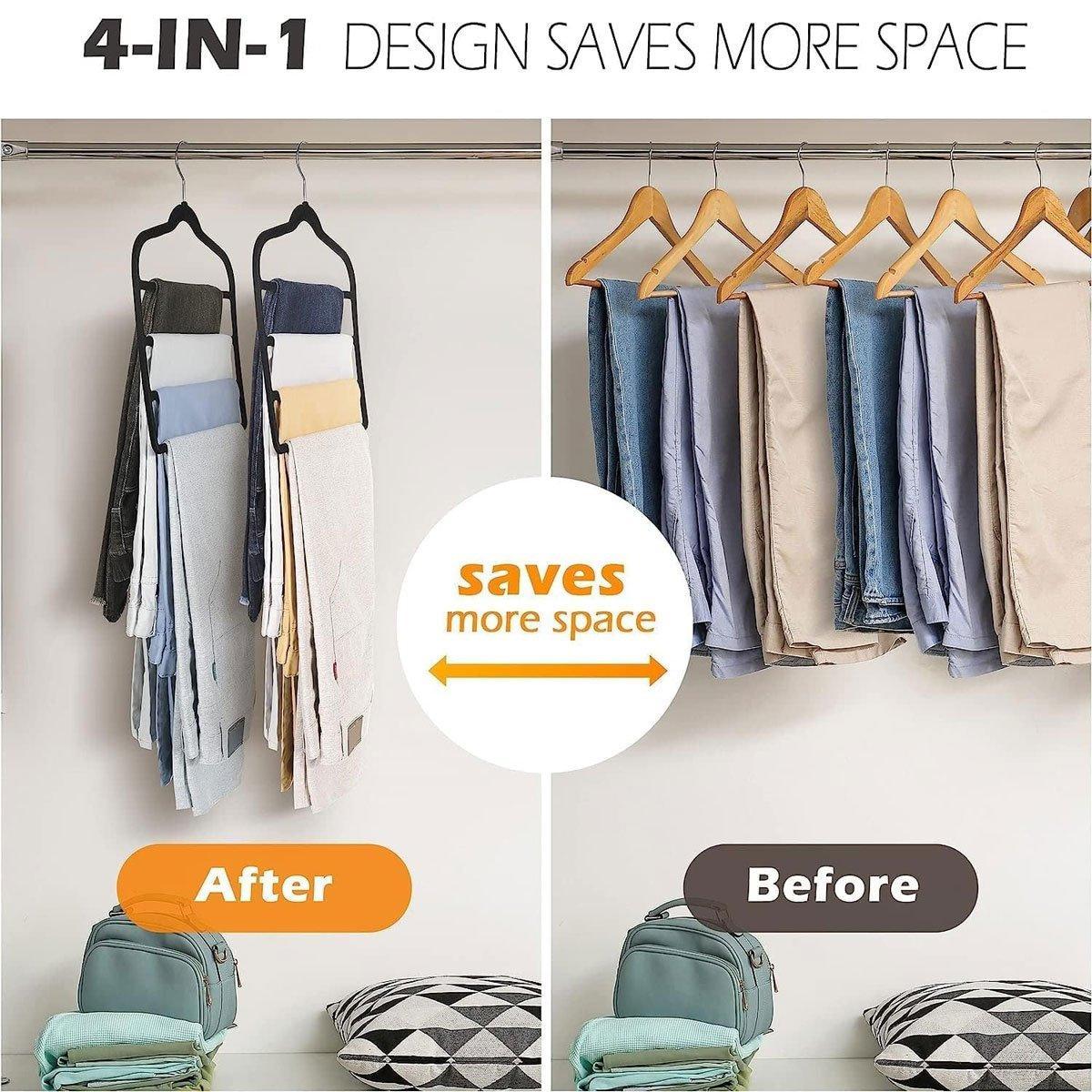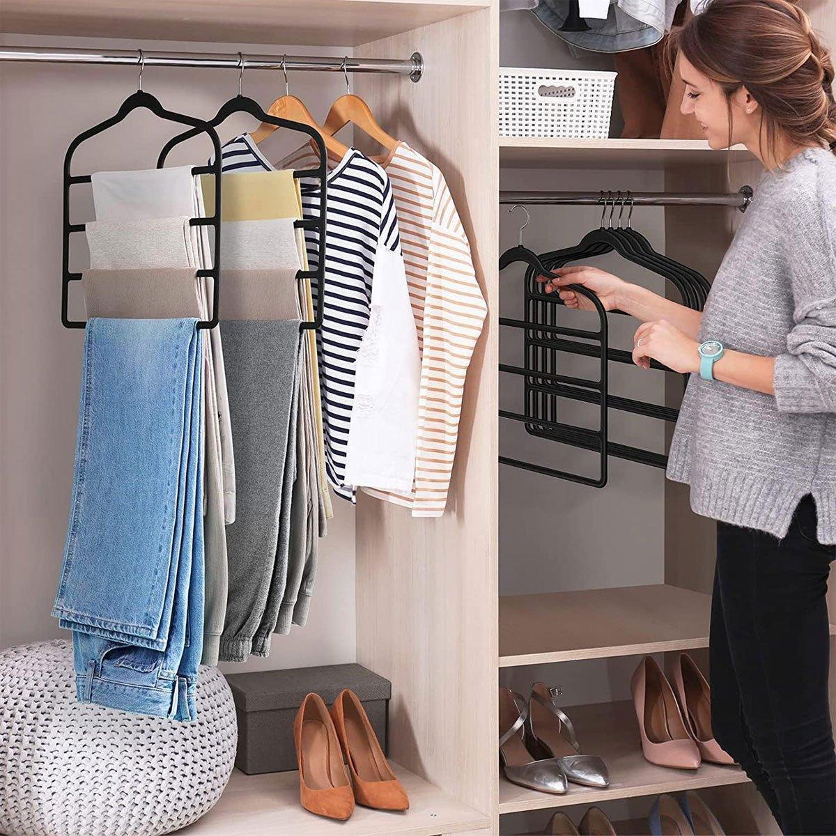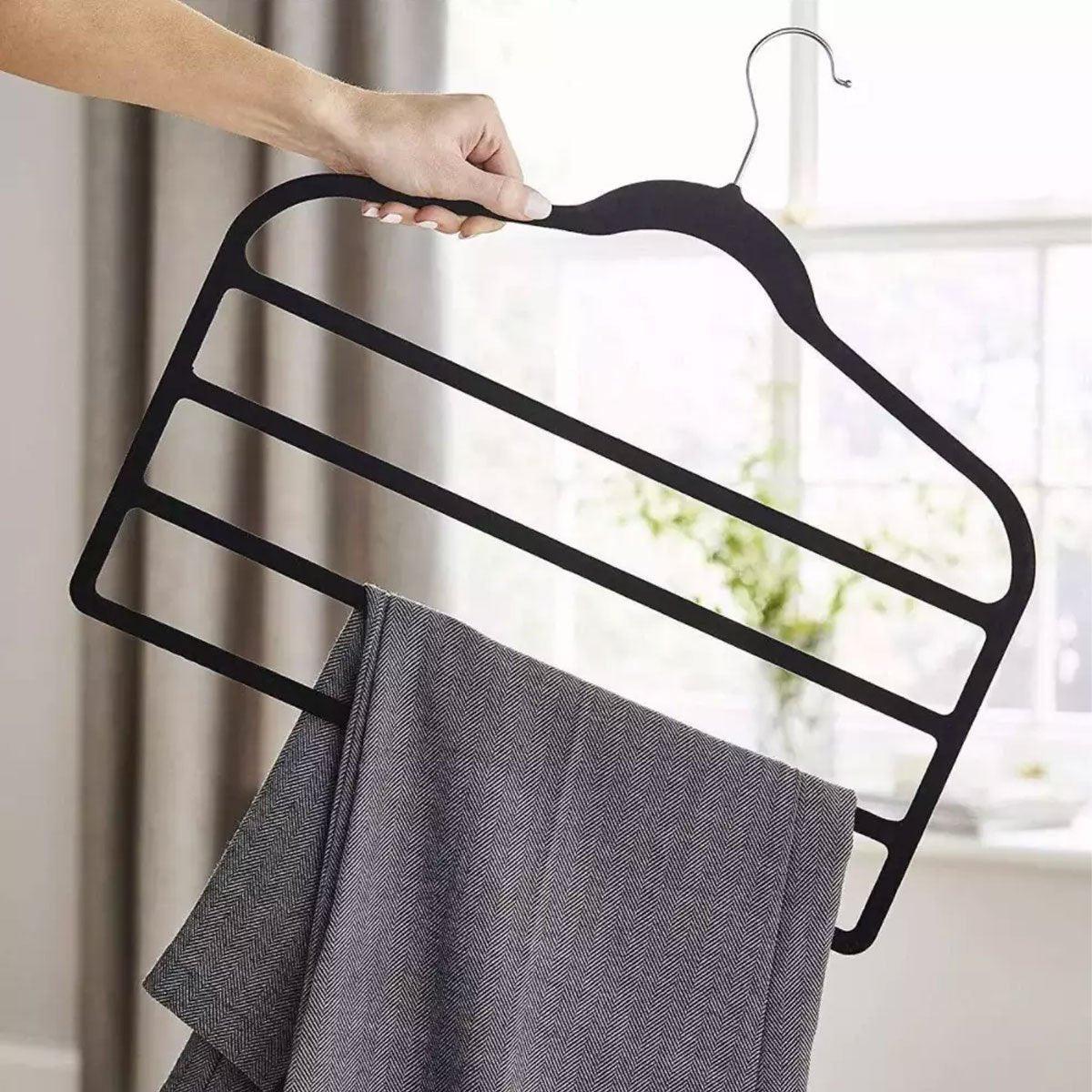 5PCS Multifunctional Non-slip Flocking Rack Multi-layer Hanger Wardrobe Storage