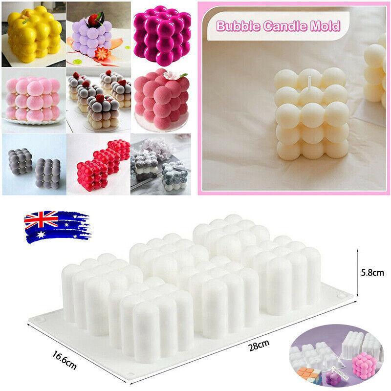 6 Cavities 3D Cube Candle Mould Silicone Wax Bubble Cake Dessert Plaster Mold