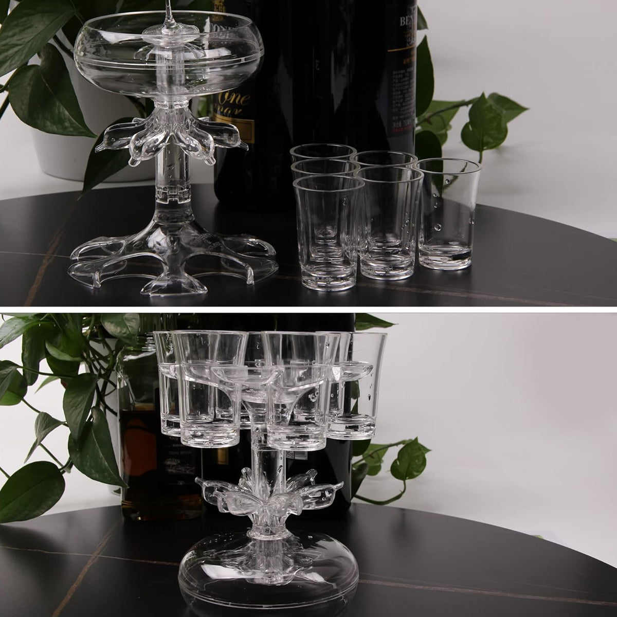 6 Head Wine Decanter Set with 6 Cups Clear Glass Wine Serving Kit for Home Party