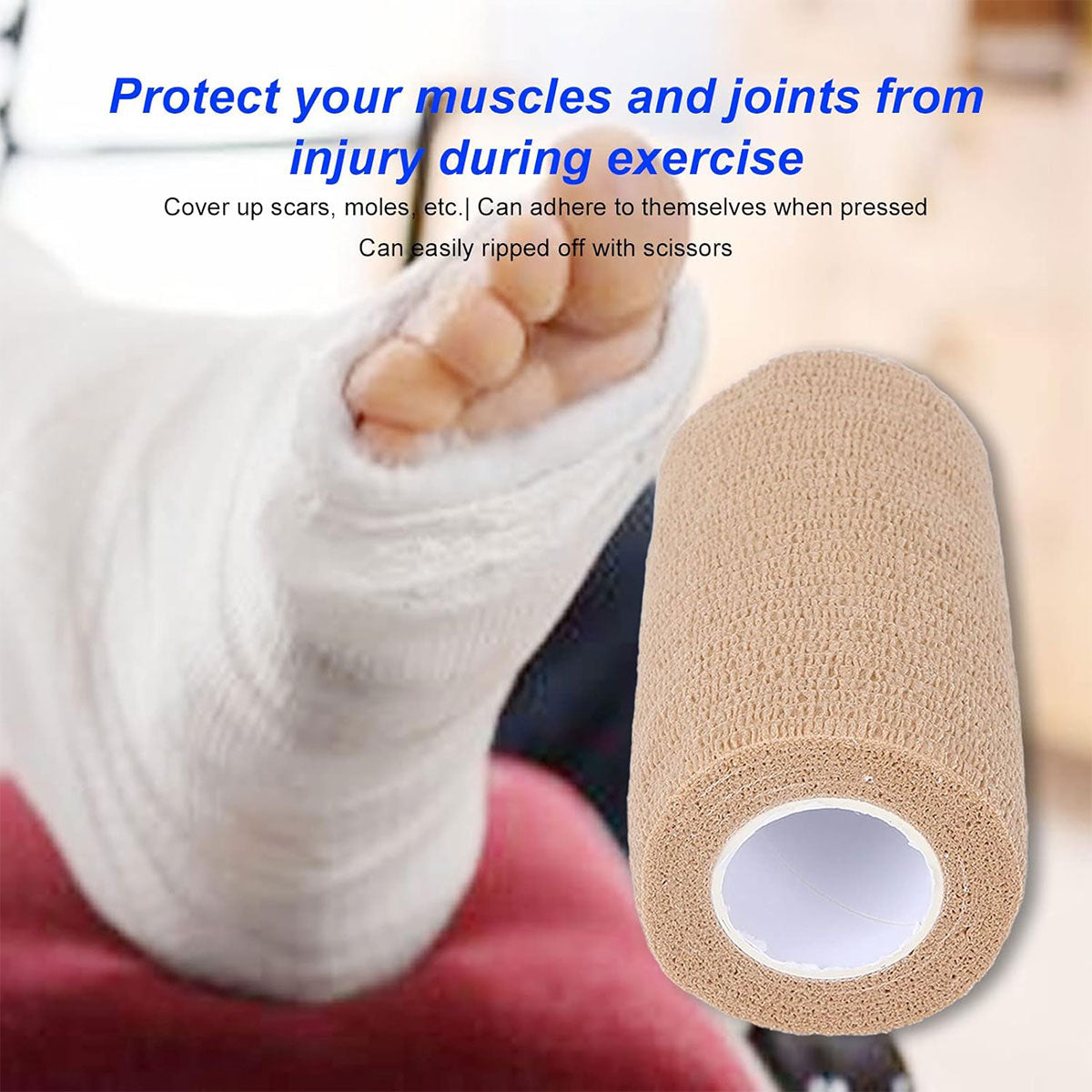 This 6-piece self-adhesive elastic wrap set is designed for versatile daily use, from sports support to creative home applications. Each roll is made of breathable non-woven fabric that sticks only to itself—no residue, no pain, and no irritation to skin or hair. Lightweight, easy to tear by hand, and flexible enough for comfortable wrapping anytime.