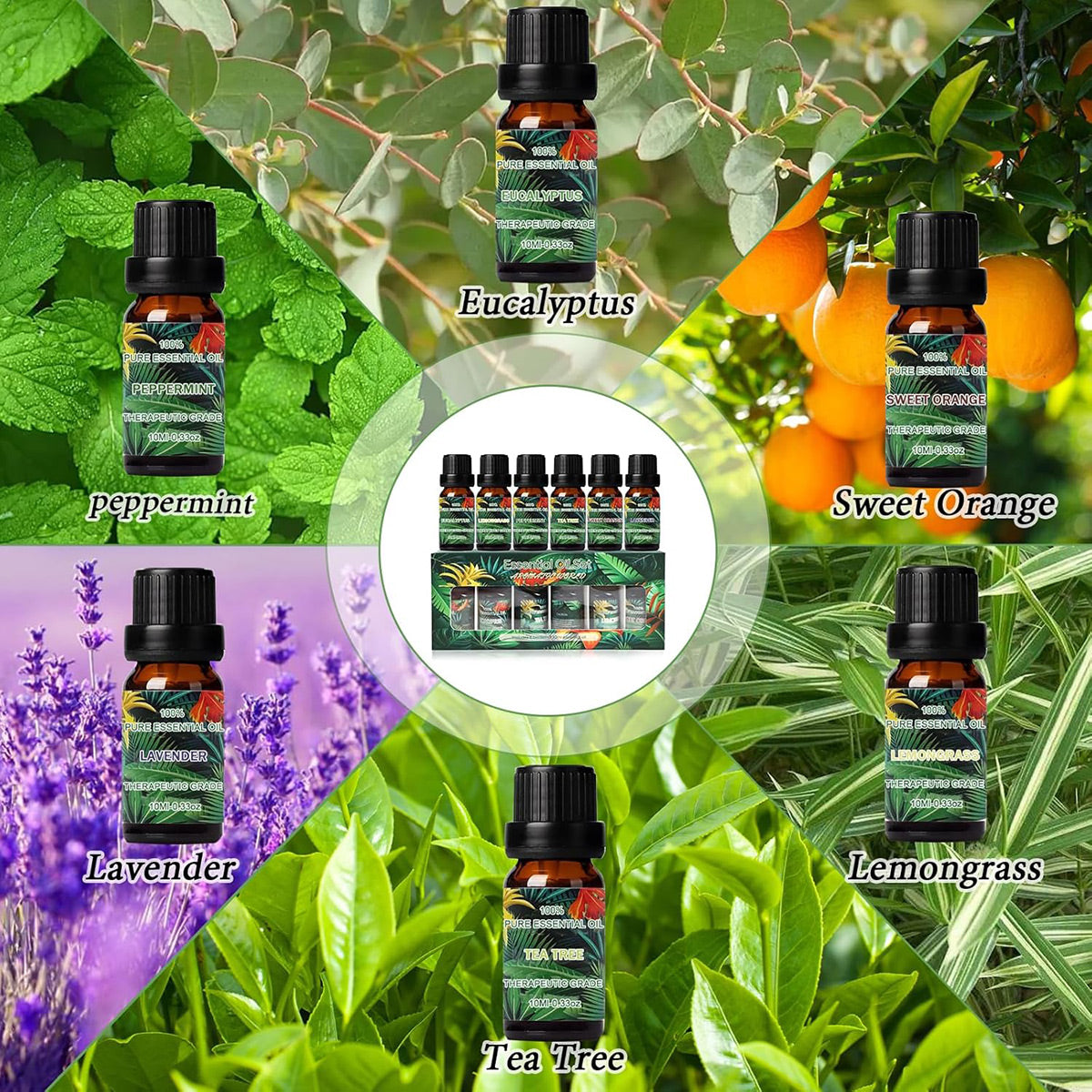 6 PCS Water Soluble Plant Aromatherapy Essential Oil for Diffuser 10ml Bottles