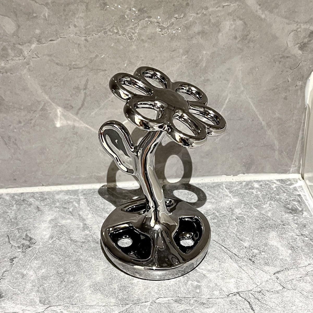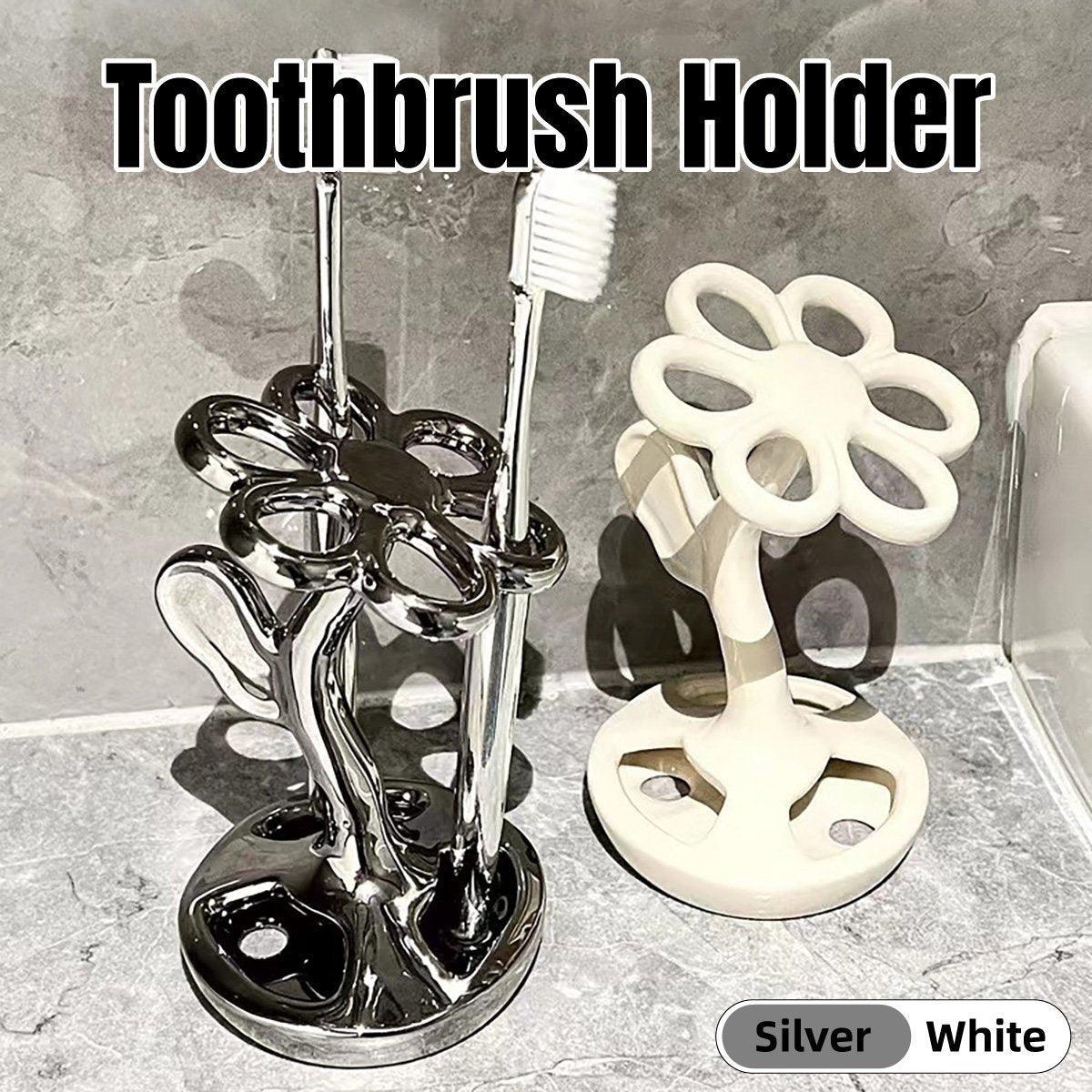 6 Slots Ceramic Toothbrush Holder Flower Shaped Makeup Brush Bathroom Shelf