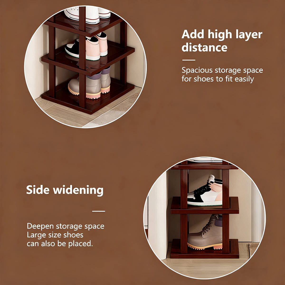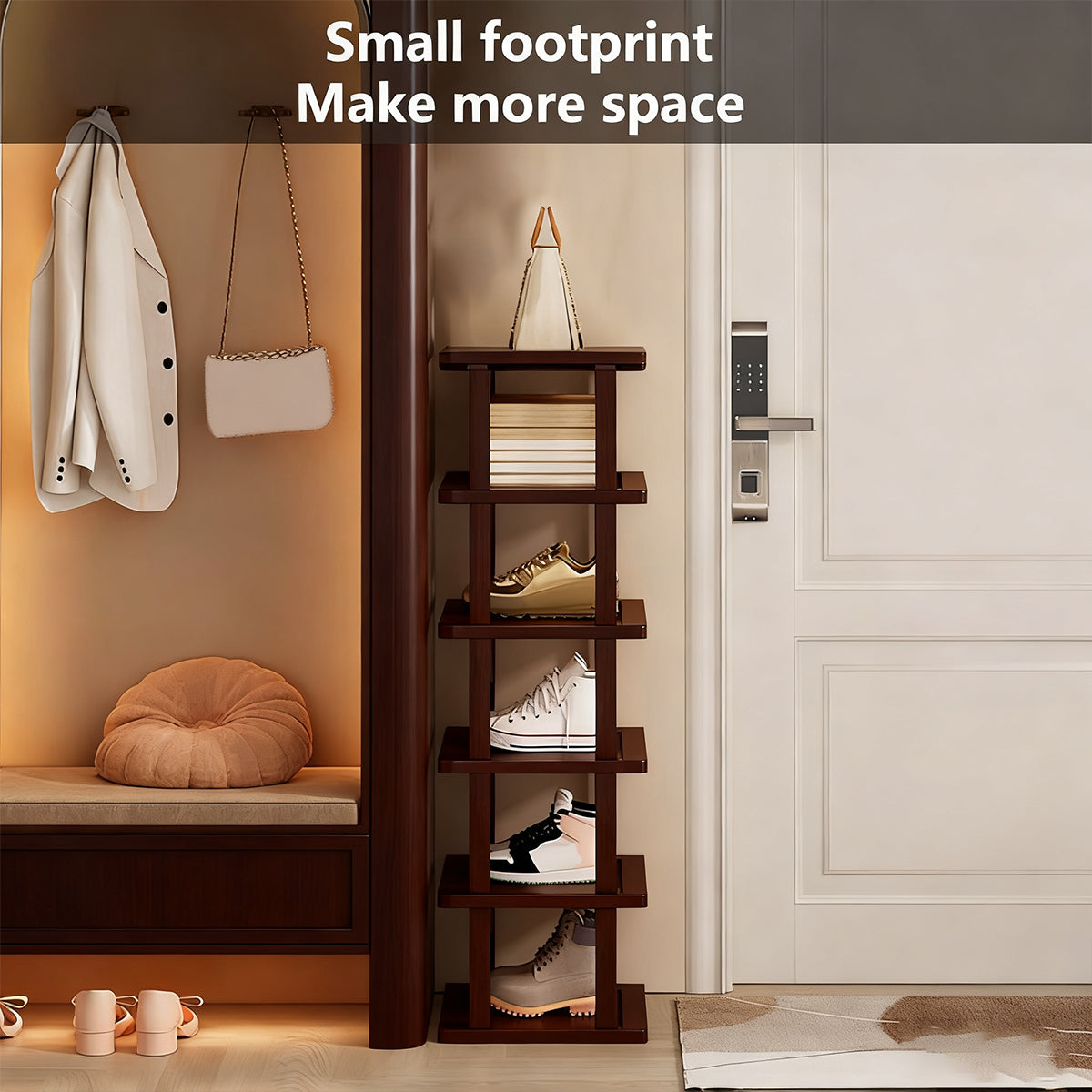6 Tier Bamboo Shoe Rack Compact Sturdy Space Saving For Entryway Hallway Use