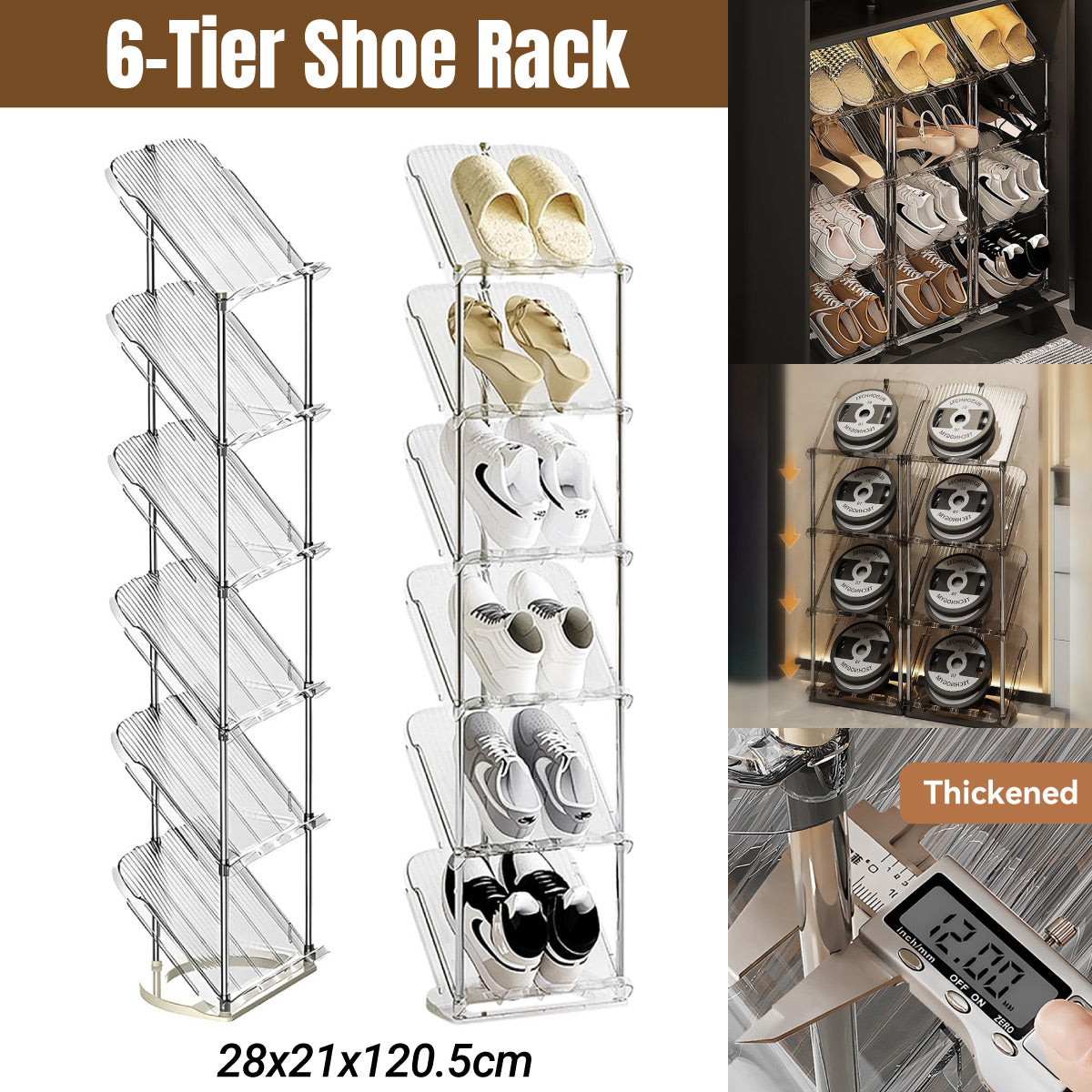 6 Tier Shoe Rack Stackable Sturdy for Home Entryway Hallway Space Saving Storage