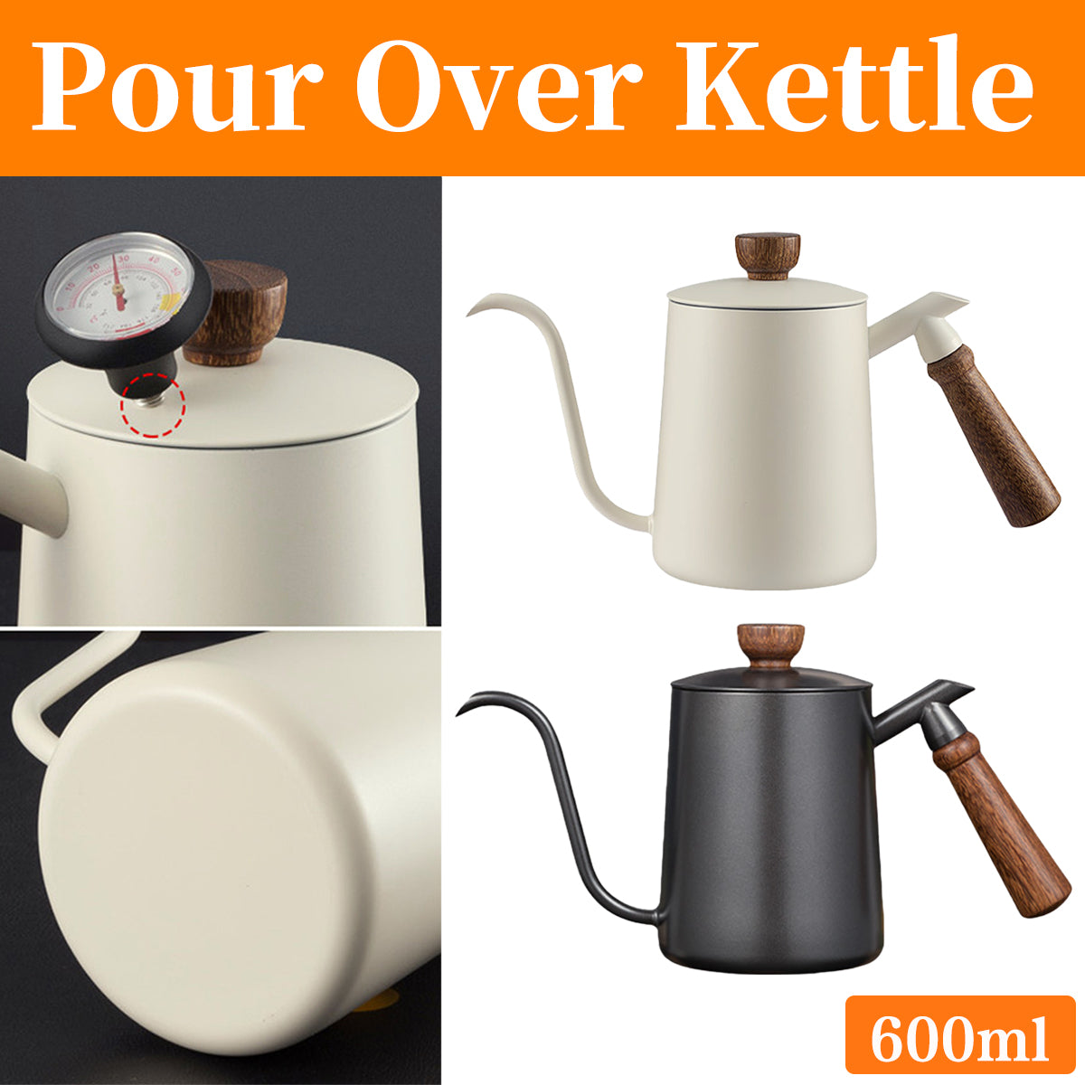 600ml Stainless Steel Coffee Pour Over Kettle Heat Resistant Home Café Brewing