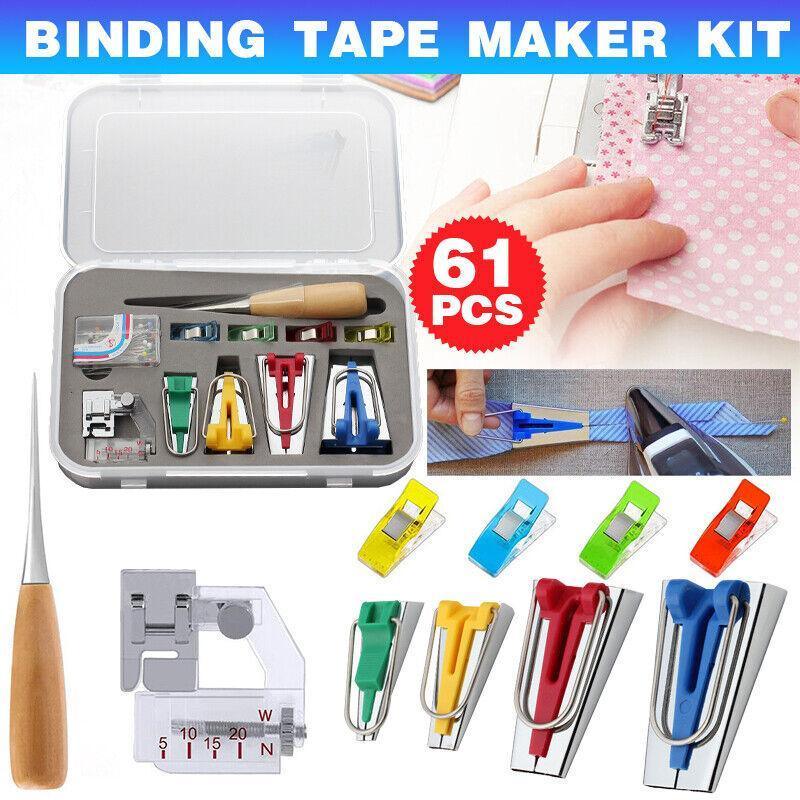 61Pcs Fabric Bias Tape Maker Sewing Binding Quilting Tool Presser Foot Kit Craft