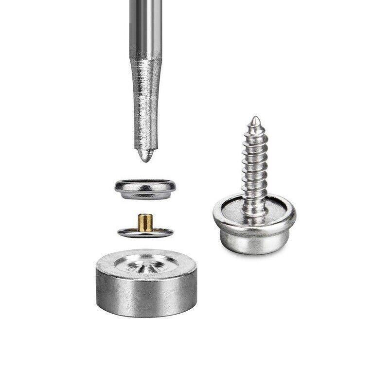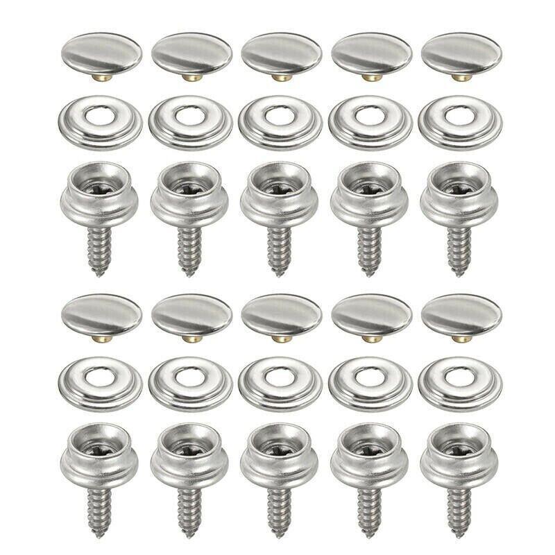 Secure your canvas projects with confidence using this canvas snap fastener kit, designed for lasting performance and ease of use. Whether you’re repairing boat covers, installing tent awnings, or customising caravans, this set provides all the essentials. Made with 304 stainless steel screws and copper-plated button caps, the kit is built to resist rust, deformation, and wear even in outdoor or marine environments.