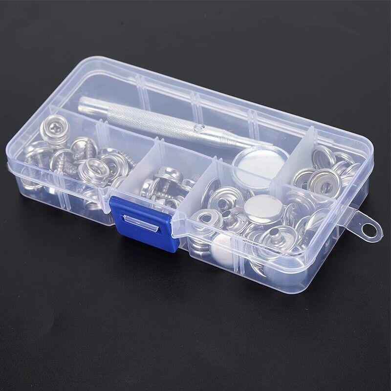 With its 62 pieces of durable fasteners and tools, this stainless steel canvas snap kit simplifies installation and enhances holding strength. From marine upholstery to canvas crafts and DIY fabric structures, this kit delivers professional-grade fastening results every time.