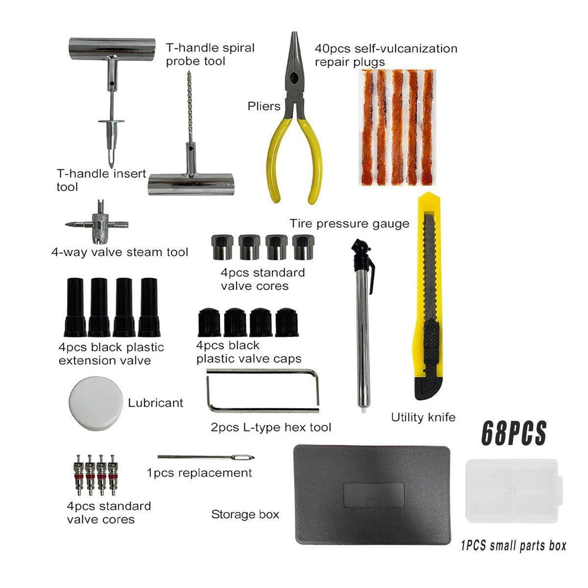 68PCS Tyre Puncture Repair Recovery Kit Heavy Duty 4WD Offroad Plugs Tubeless