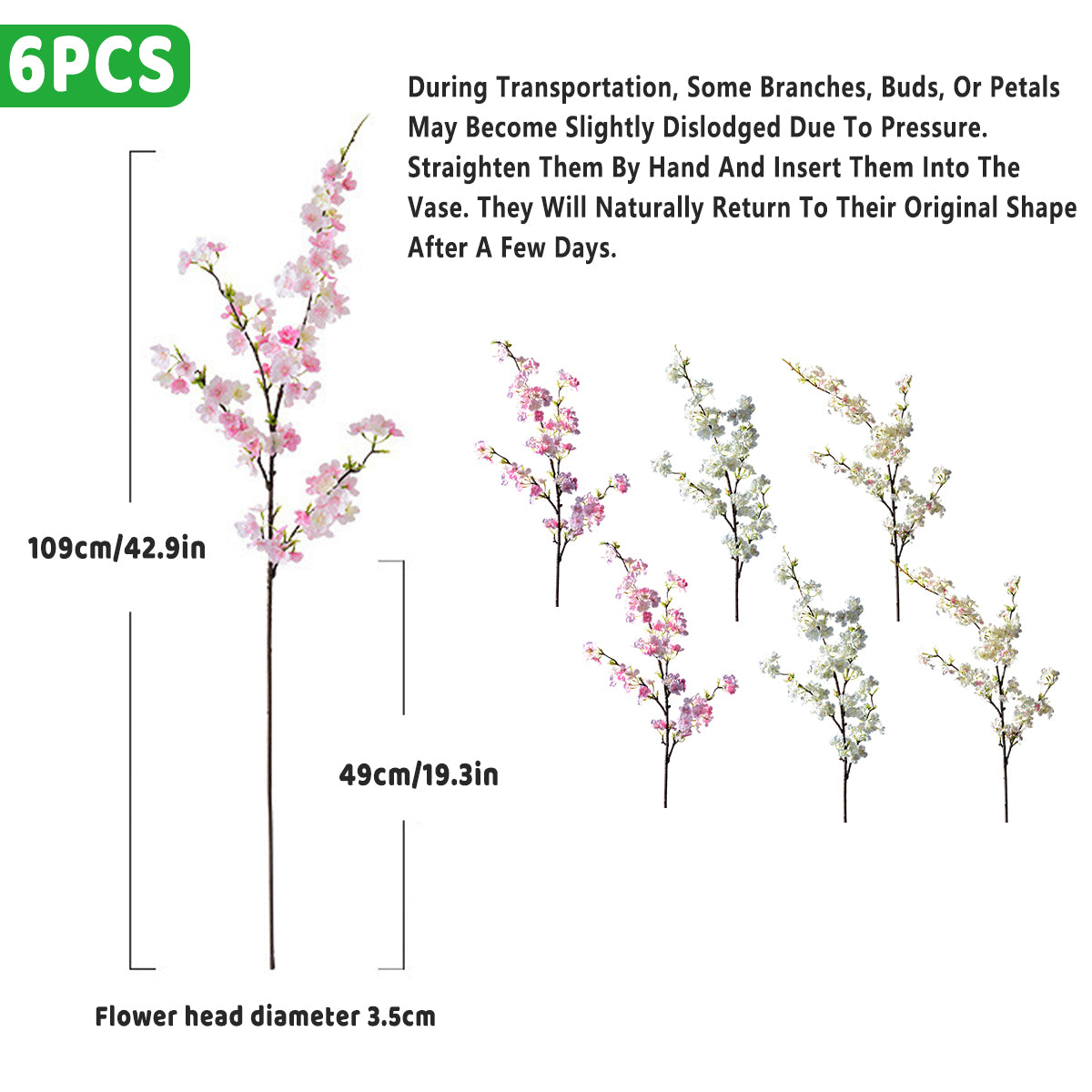 6PCS Artificial 4-Prong Cherry Blossom Branches Decorative for Home Vase Party