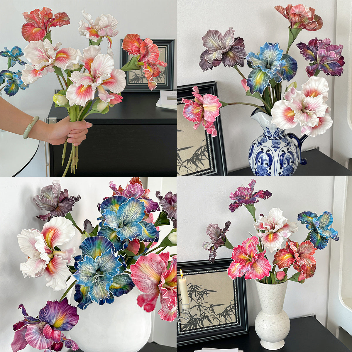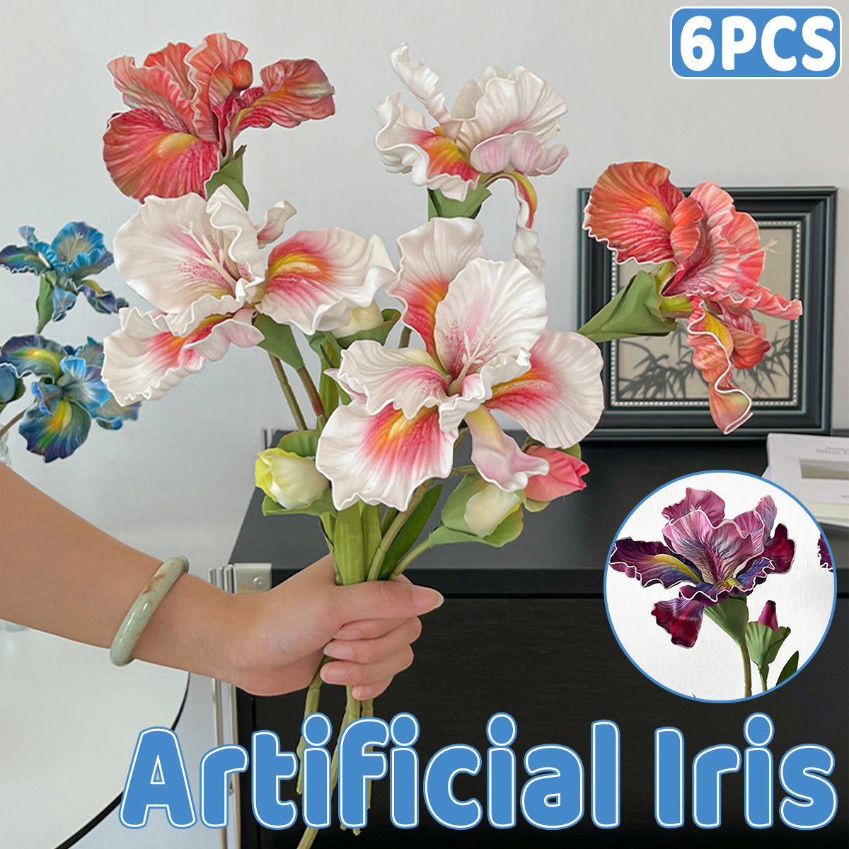 6PCS Artificial Iris Flowers PU Material Durable for Home Wedding Party Decor