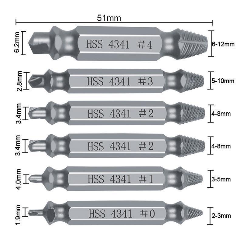 6Pcs Damaged Screw Extractor Set Easy Out Broken Drill Bit Remover Kit Speed Out