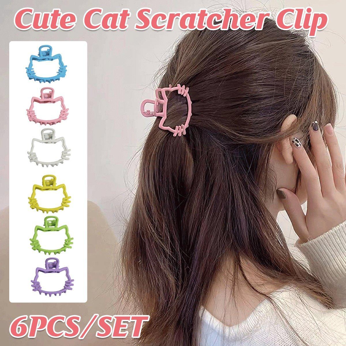 6pcs Metal Hollow Cat Ear Hair Clips Half Updo Plate Headdress Hair Accessories