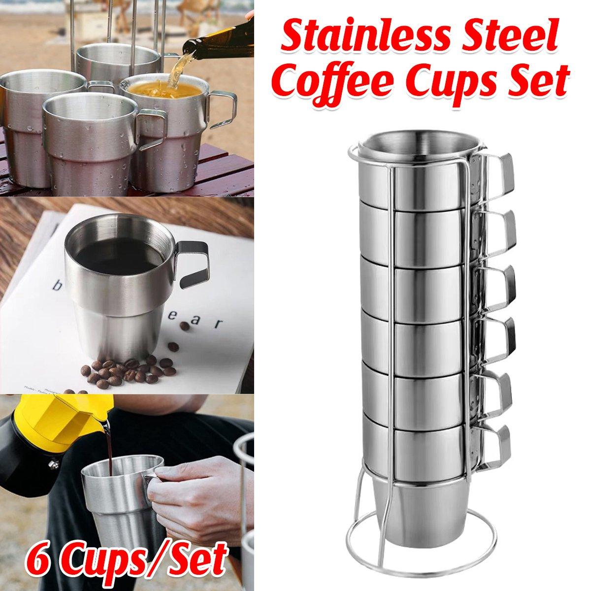 6pcs Stainless Steel Coffee Mugs Durable Insulated Drinkware for Hot Beverages