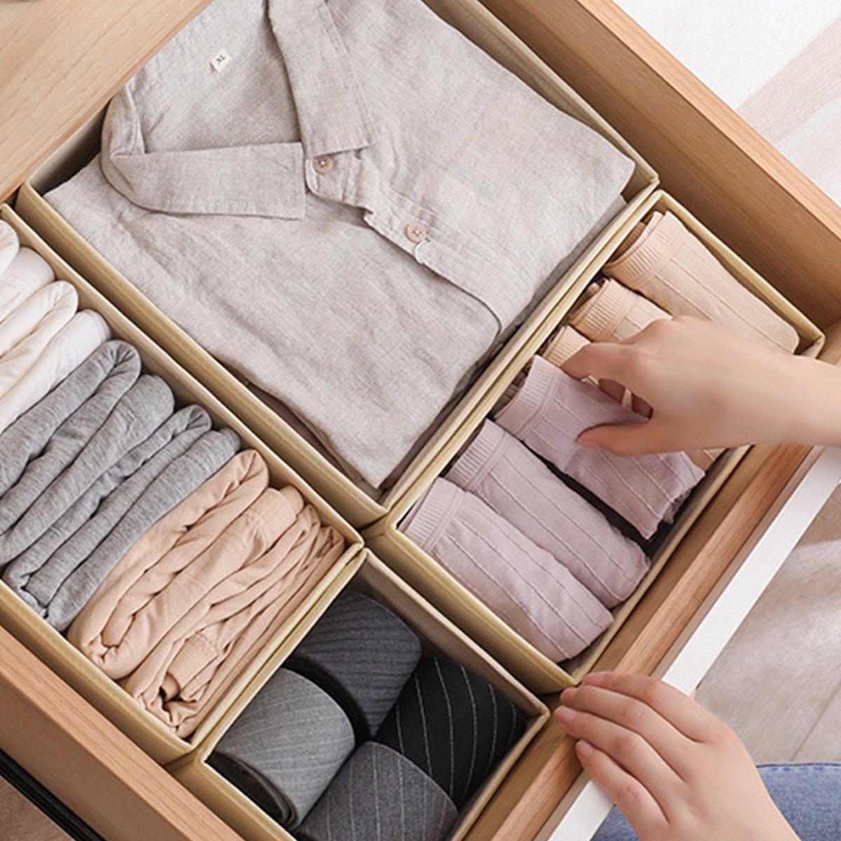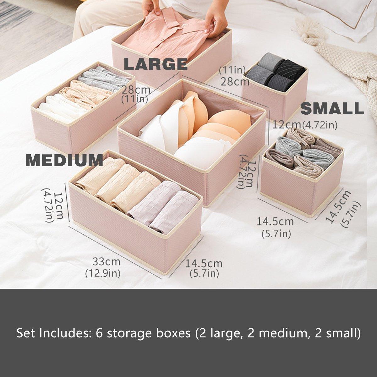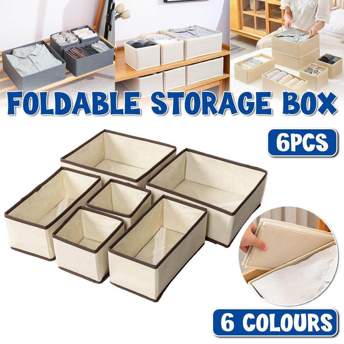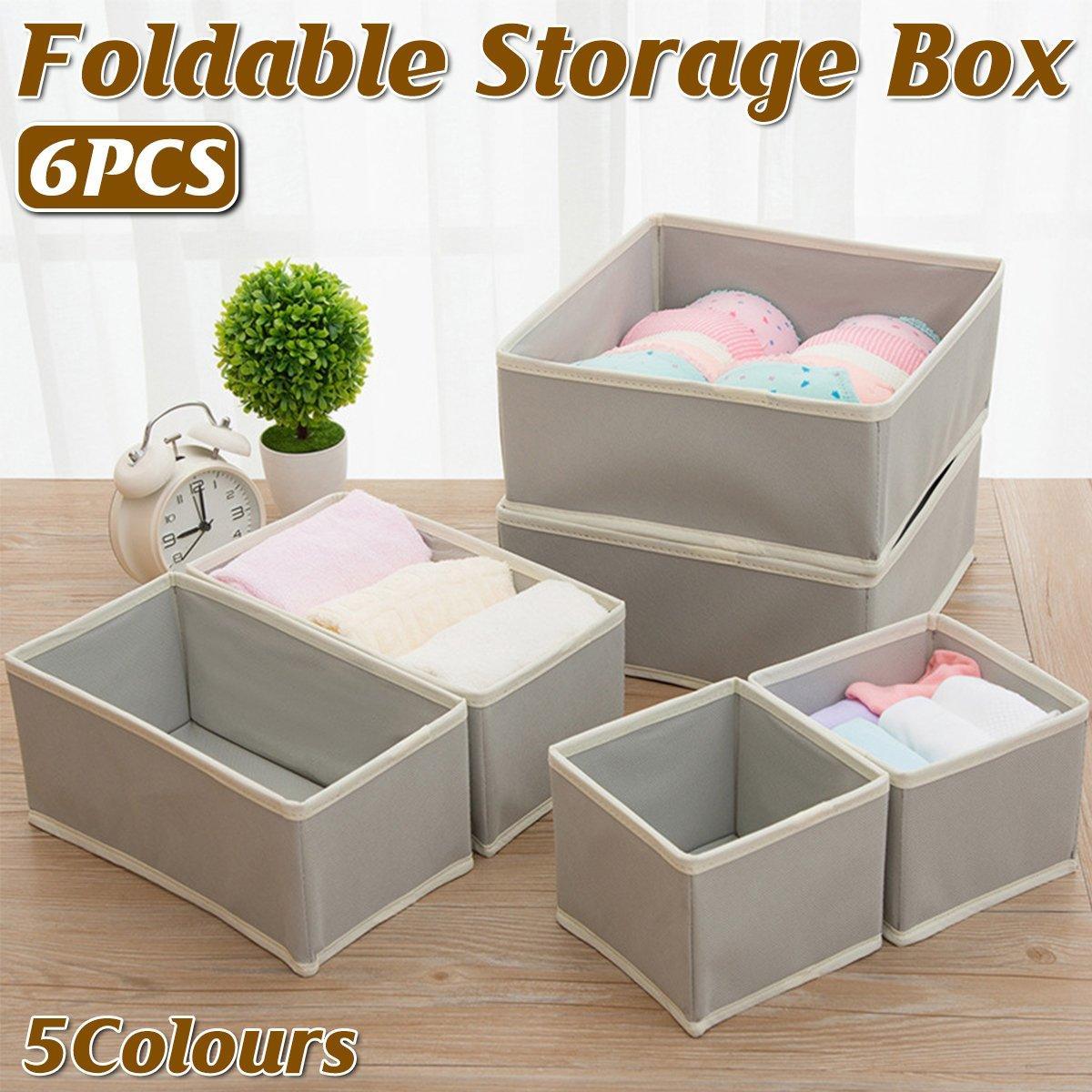 6Piece Set Foldable Non-woven Underwear Bra Socks Storage Box Drawer Organizer