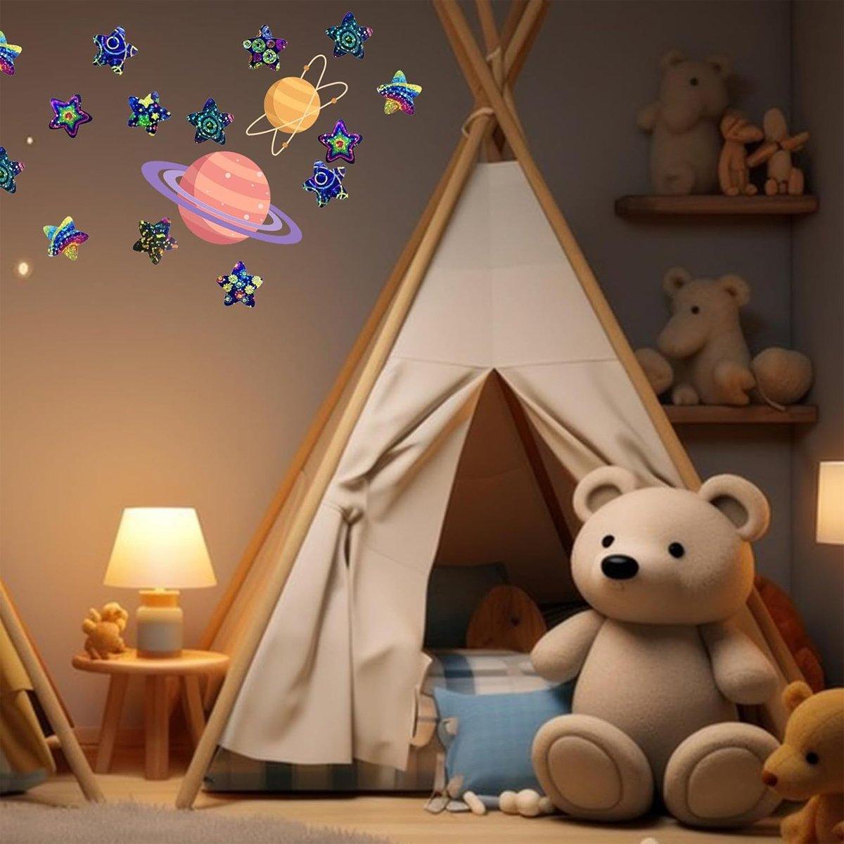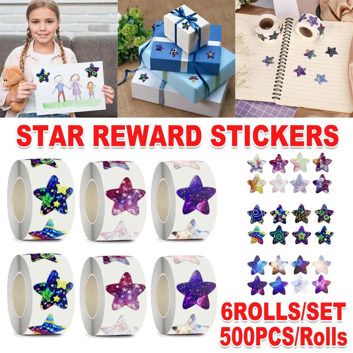 6Rolls Self-Adhesive Star Space Stickers Decorative Sticker Label Roll Bonus Set