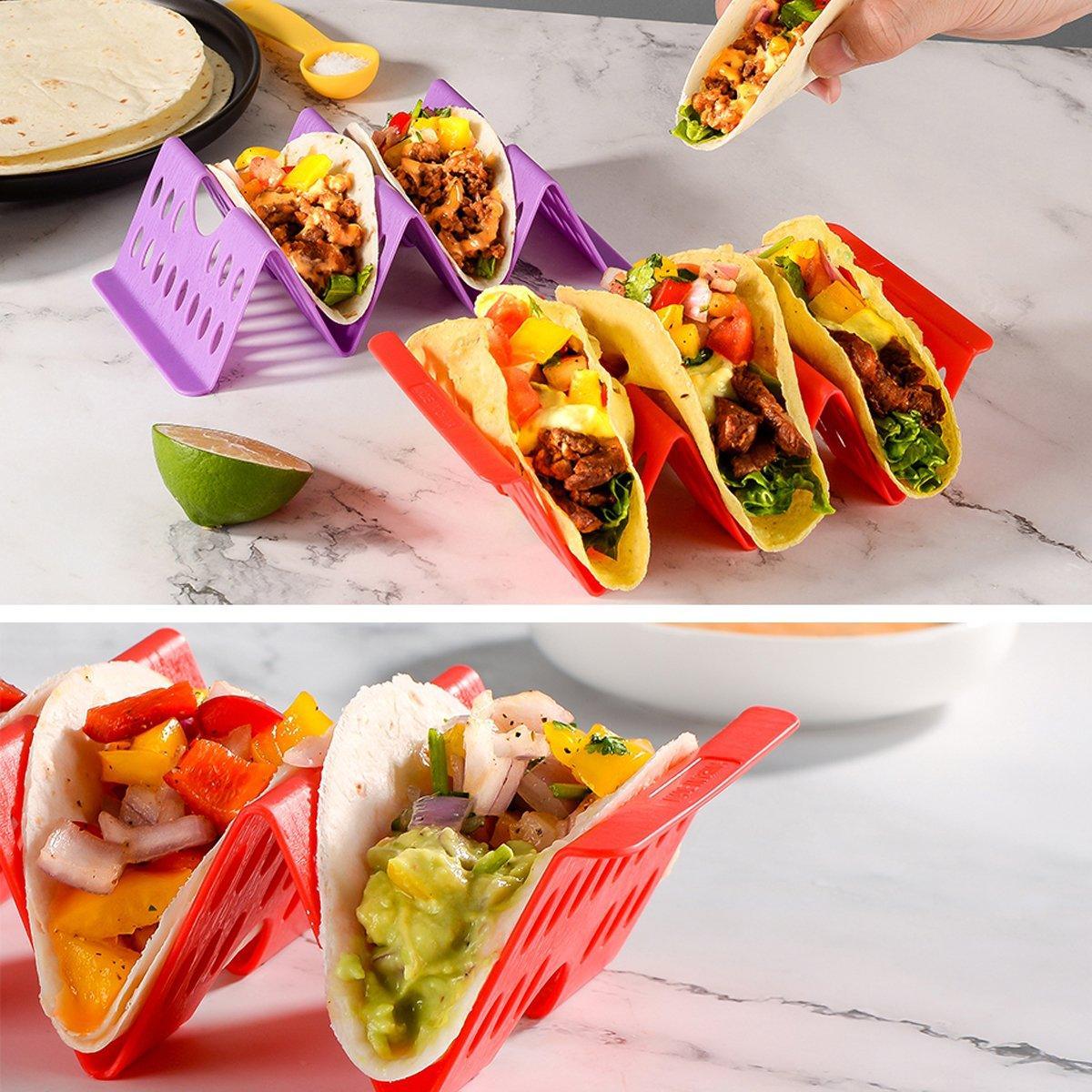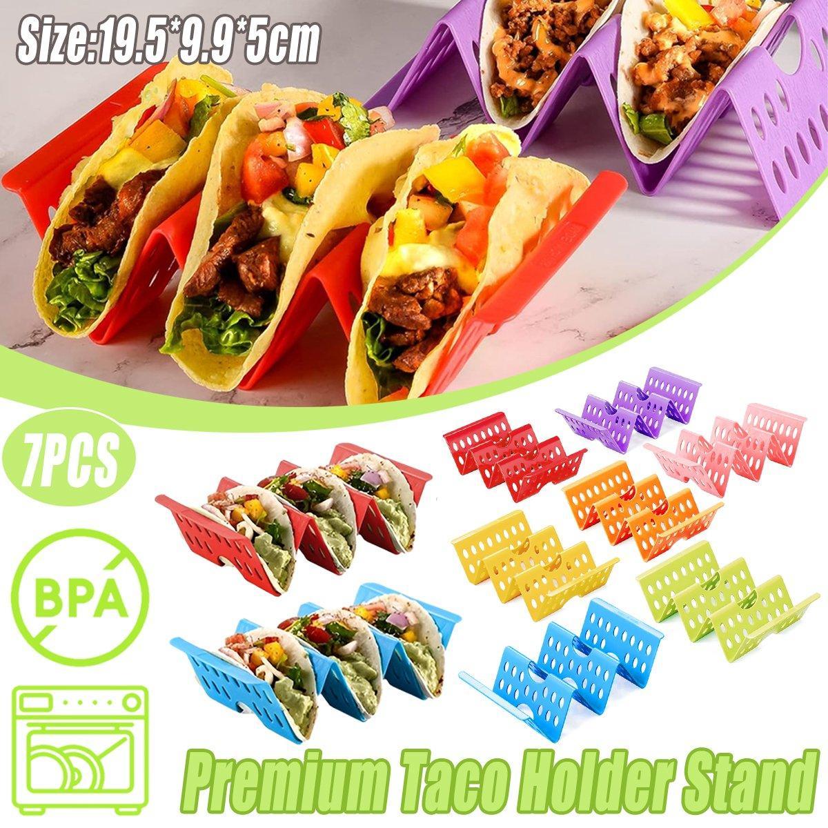 7 x Plastic Taco Holder Tray Wavy Triangle Tortilla Rack Perforated Baking Stand