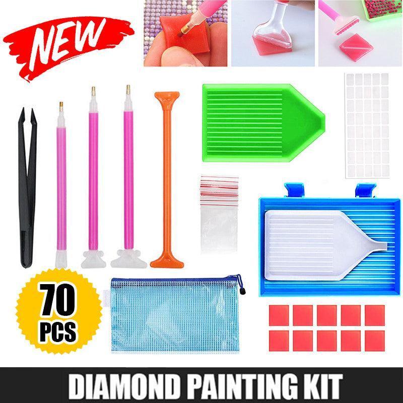 70PCS Diamond Painting Tools Kit with Pens Trays Glue and Storage Bag for DIY Art