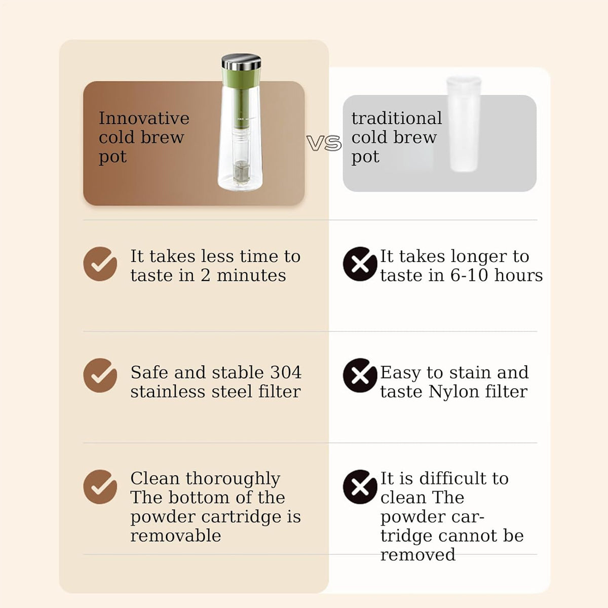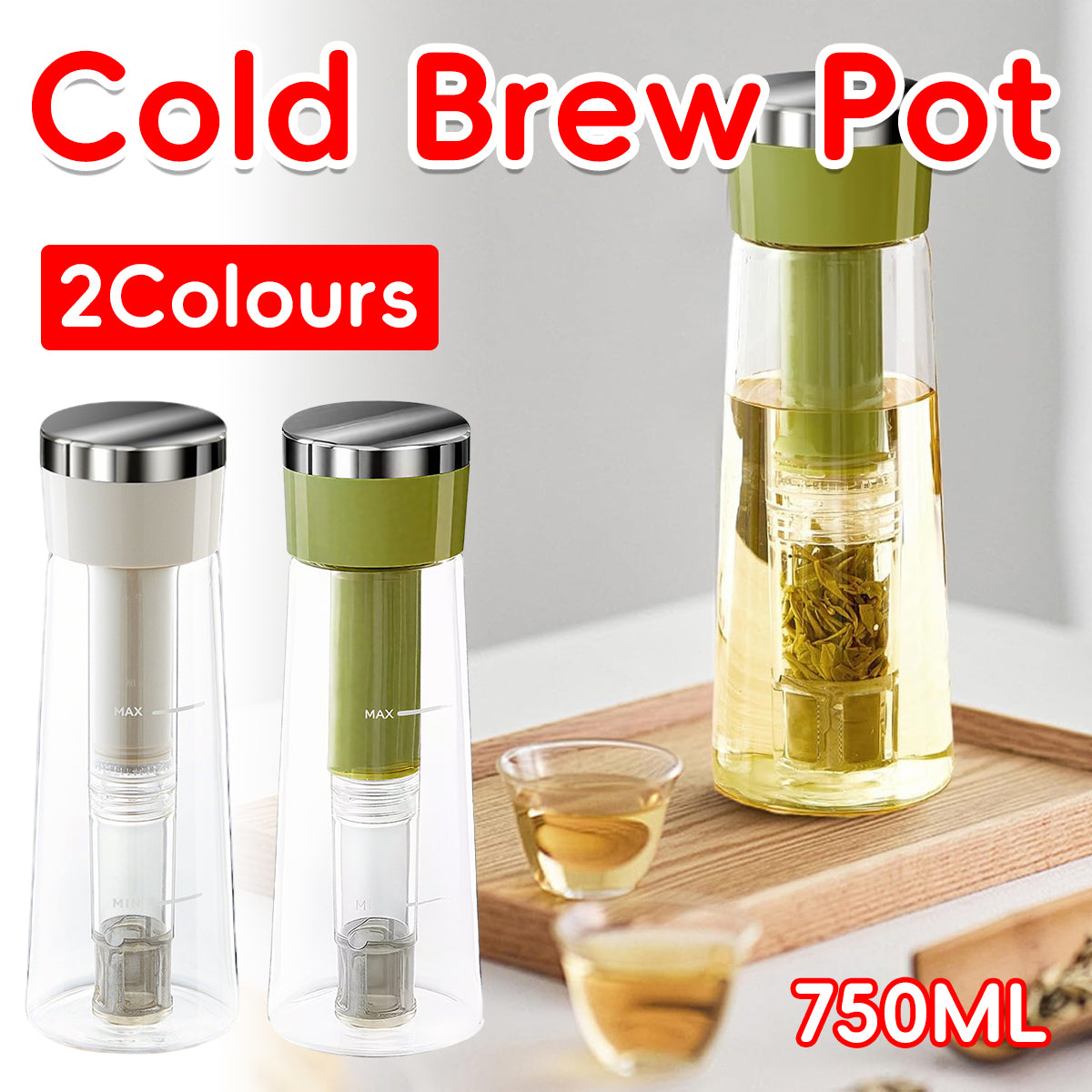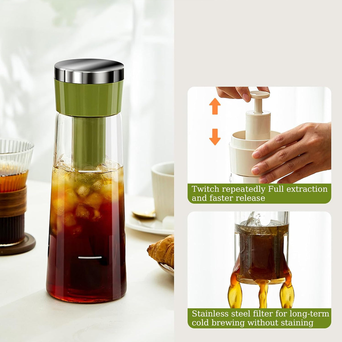 750ml Stainless Steel Filter Cold Brew Coffee Pot Leakproof Design Iced Drinks