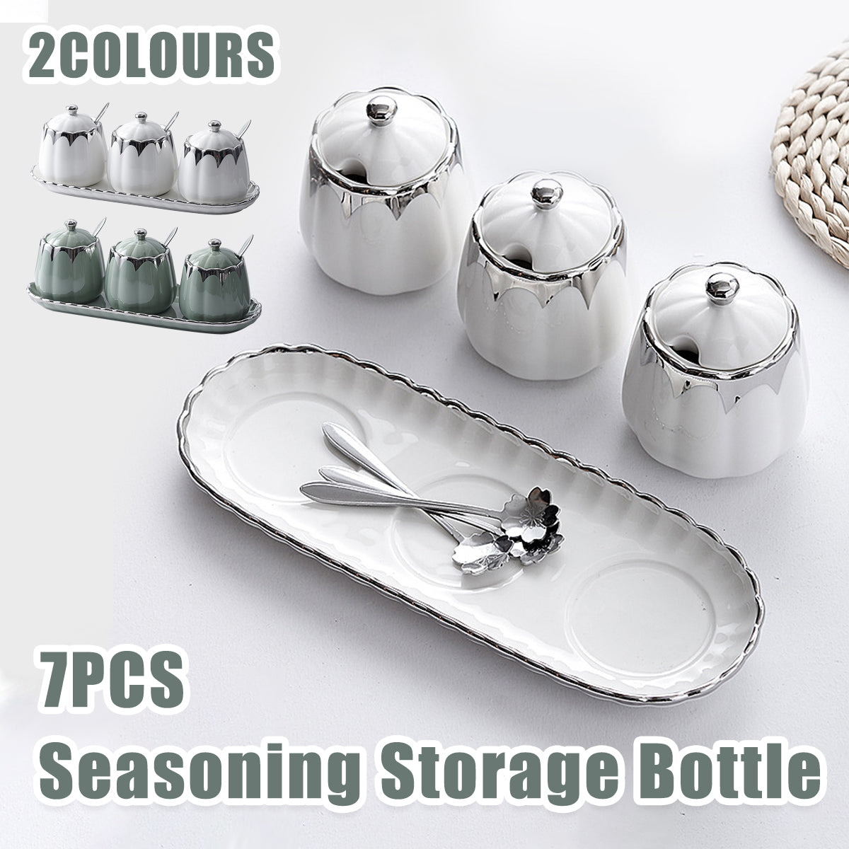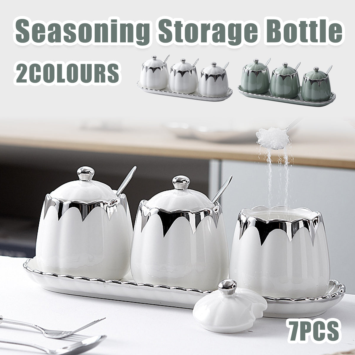 7pcs Seasoning Jars Kitchen Salt Spice Containers Storage Bottles For Condiment