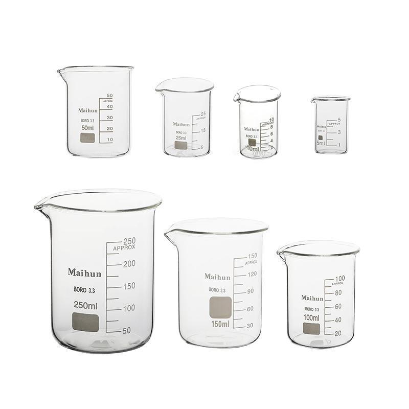 7PCS/Set Low Form Glass Beaker 5ml-250ml Borosilicate Measuring Lab Glassware