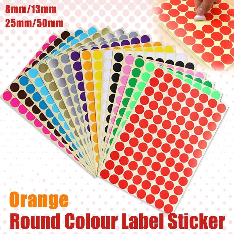8/13/25/50mm Colour Sticker Dots Adhesive Round Labels Circular Scrapbooking Orange