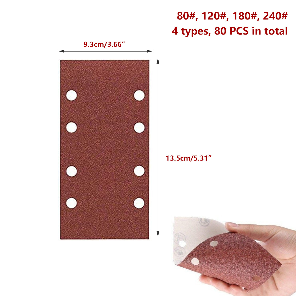 80PCS Rectangular Sanding Sheets 8 Hole Flocked Sandpaper For Polishing Wood