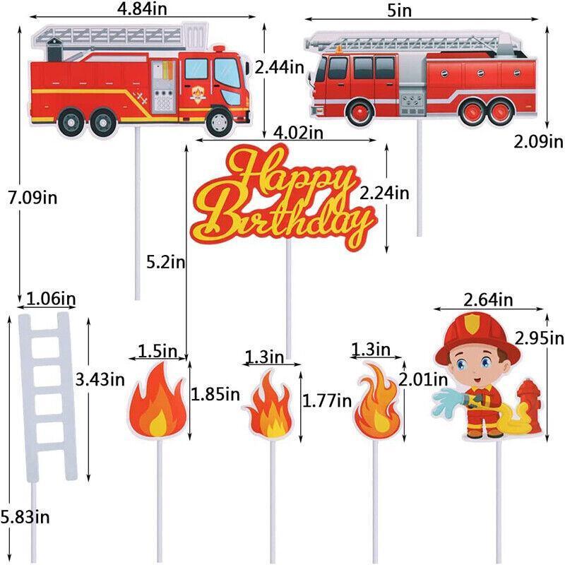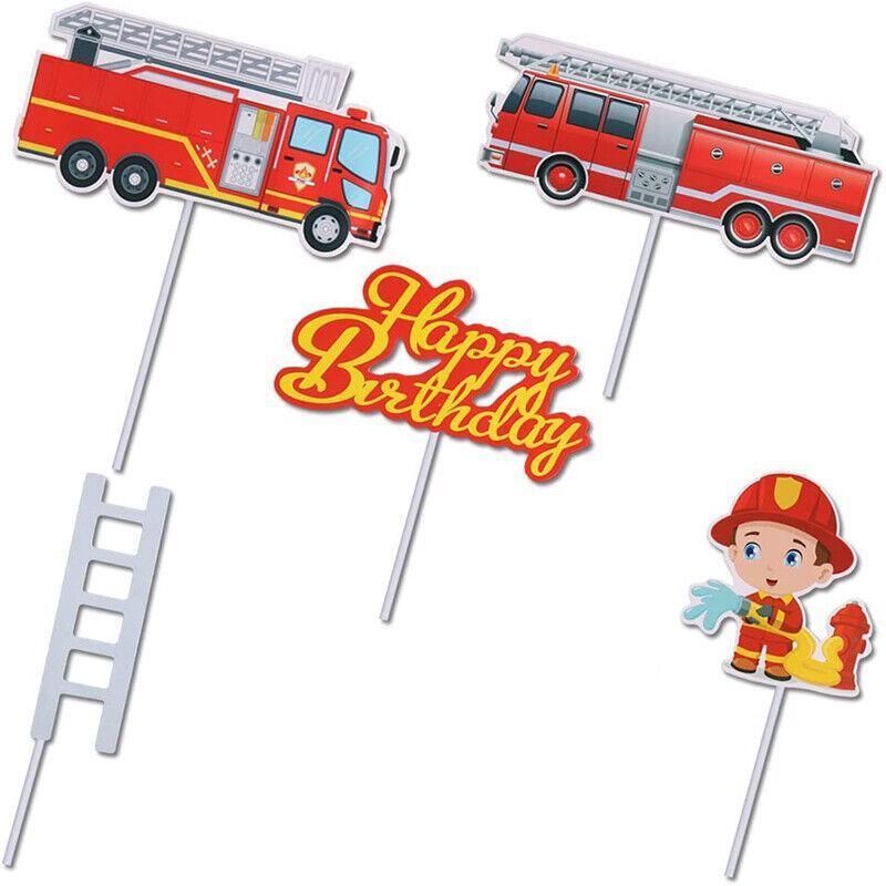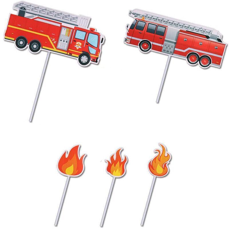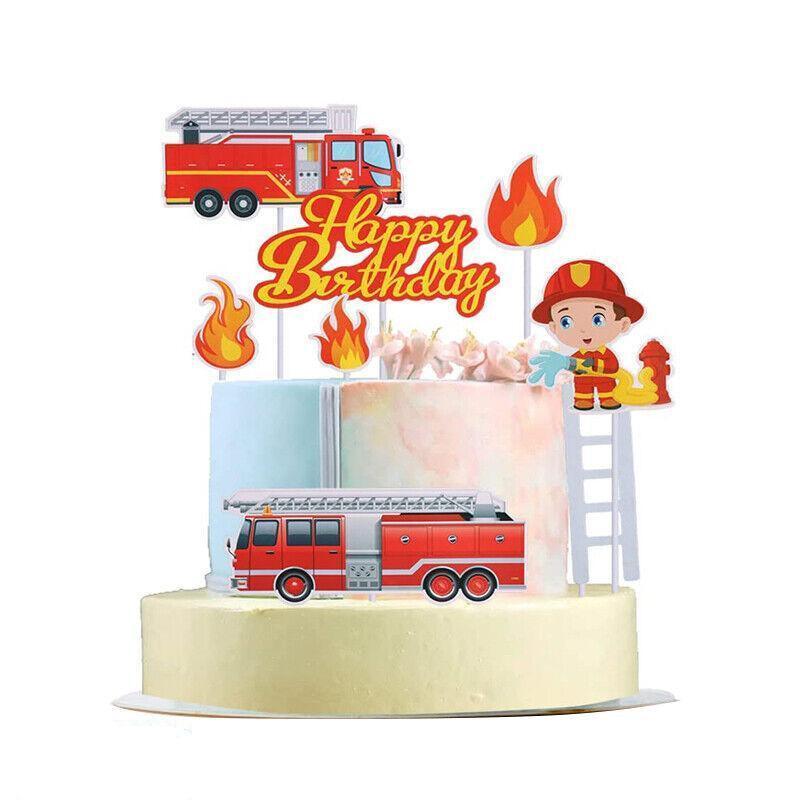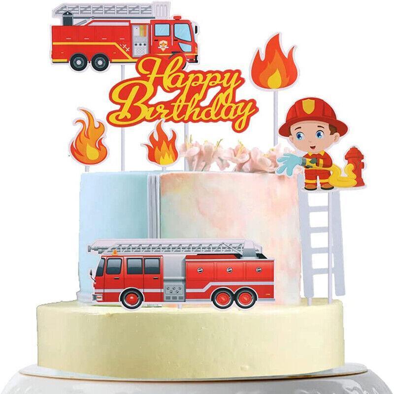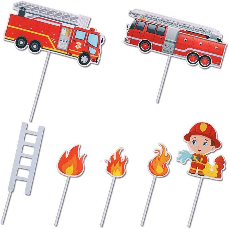 8PCS Fireman Cake Cupcake Topper Set Fire Truck Engine Happy Birthday Party